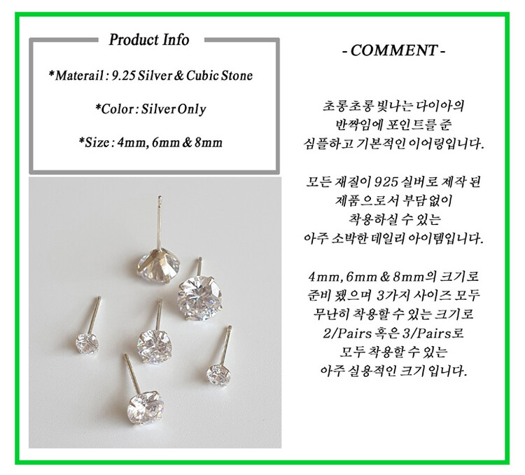 925 실버 큐빅 스터드 귀걸이