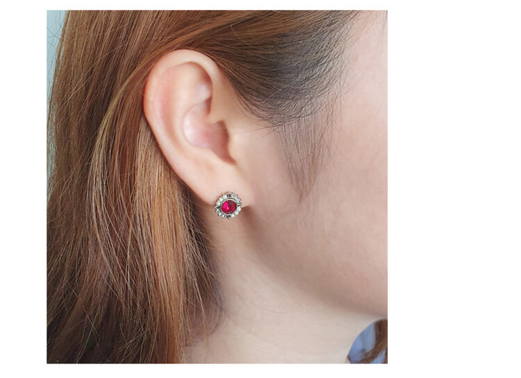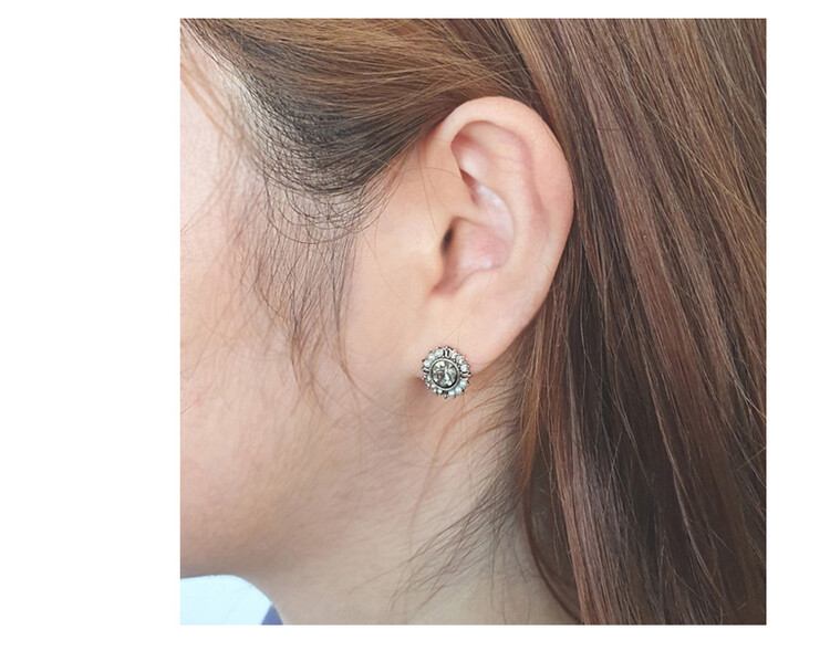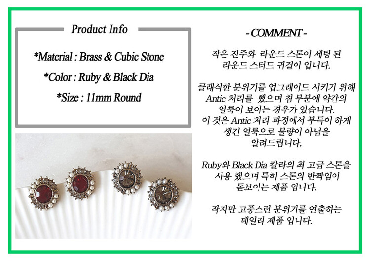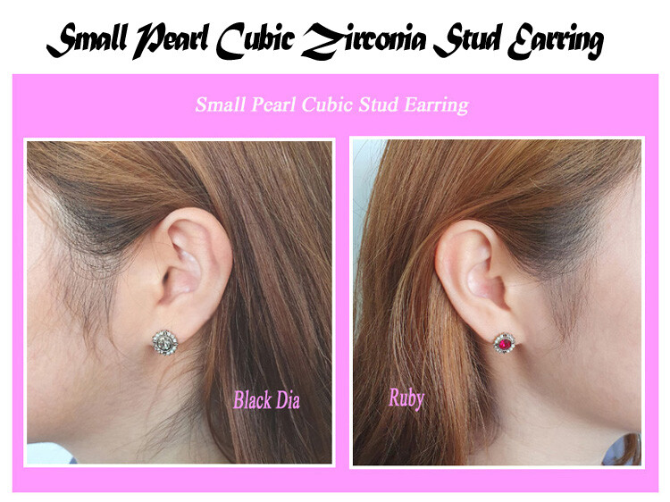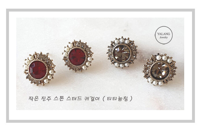 작은 진주 스톤 스터드 귀걸이 ( 티티늄침 )