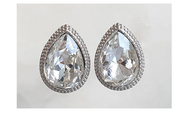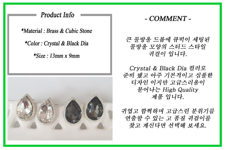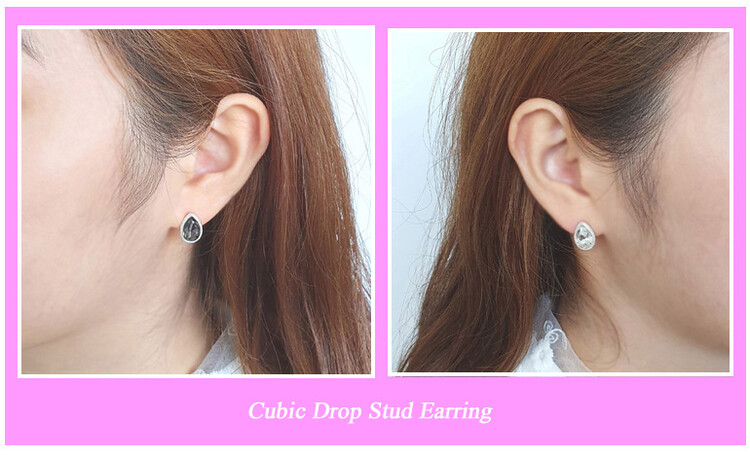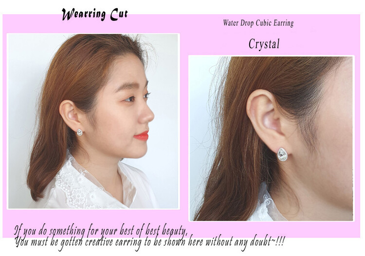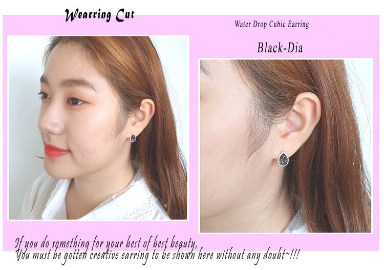 물방울 드롭 큐빅 귀걸이(은침)