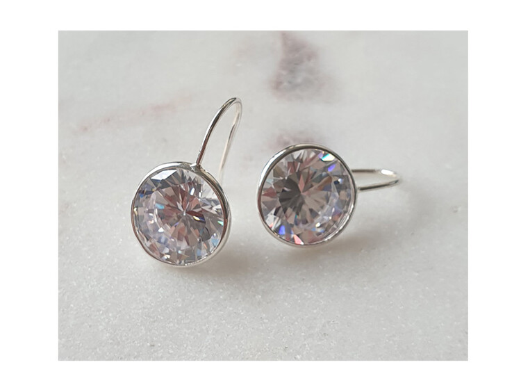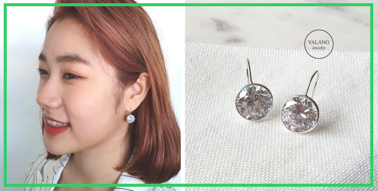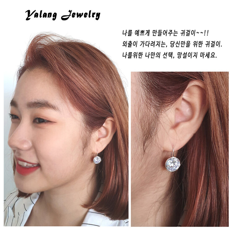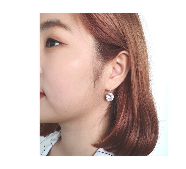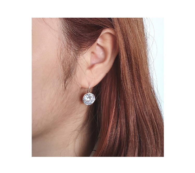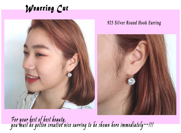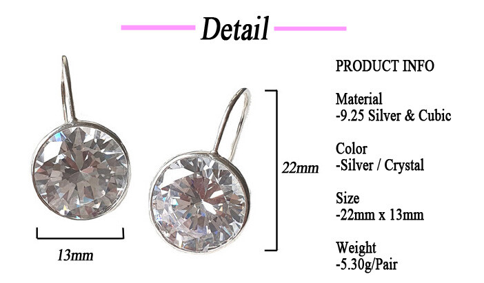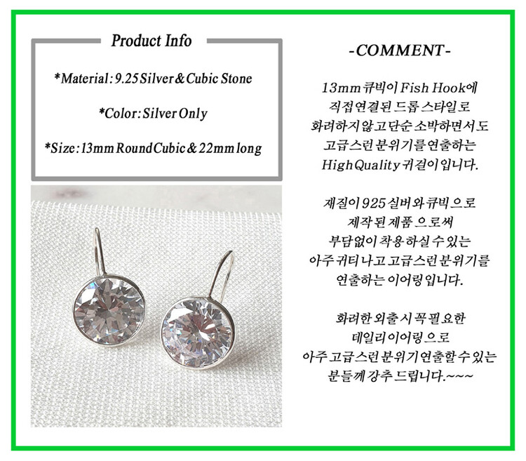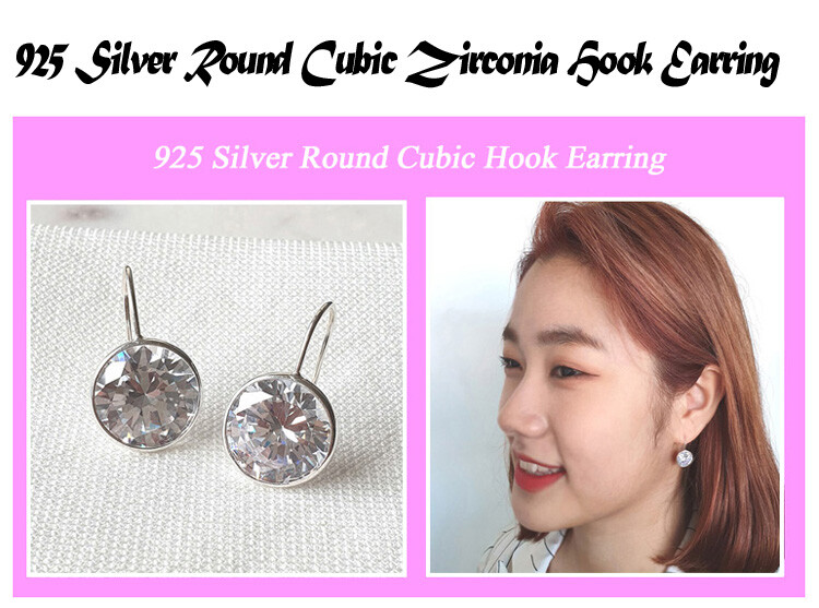 925 실버 Round Hook 큐빅 이어링