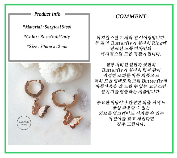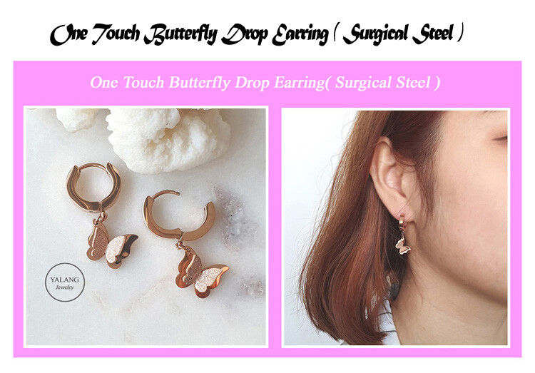 원터치 Butterfly Drop 귀걸이(써지컬스틸)