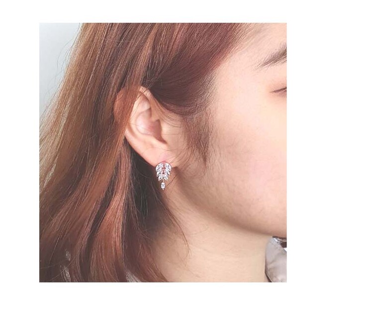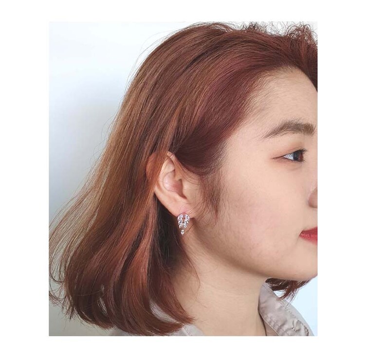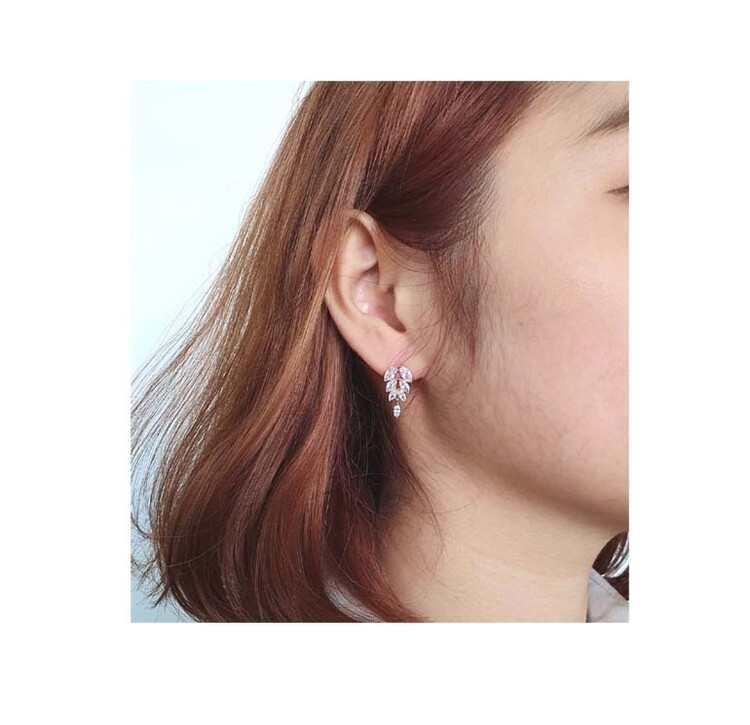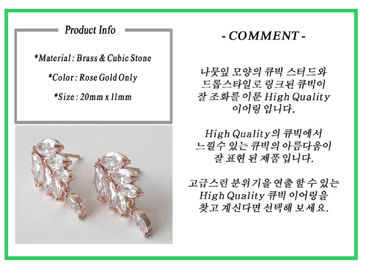Leaf Oval 큐빅 이어링(티타늄침)