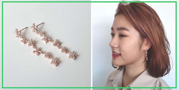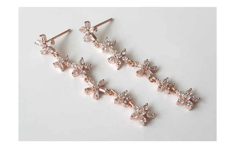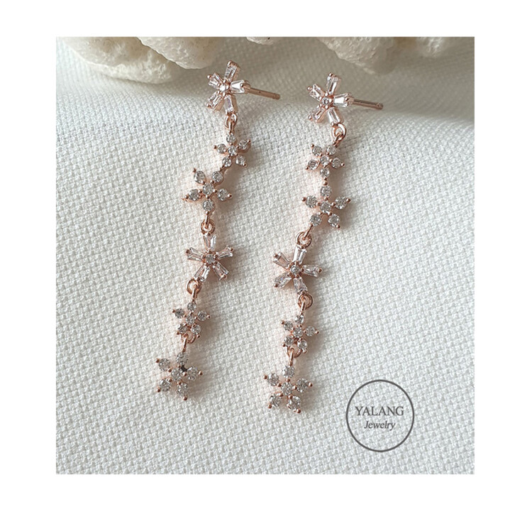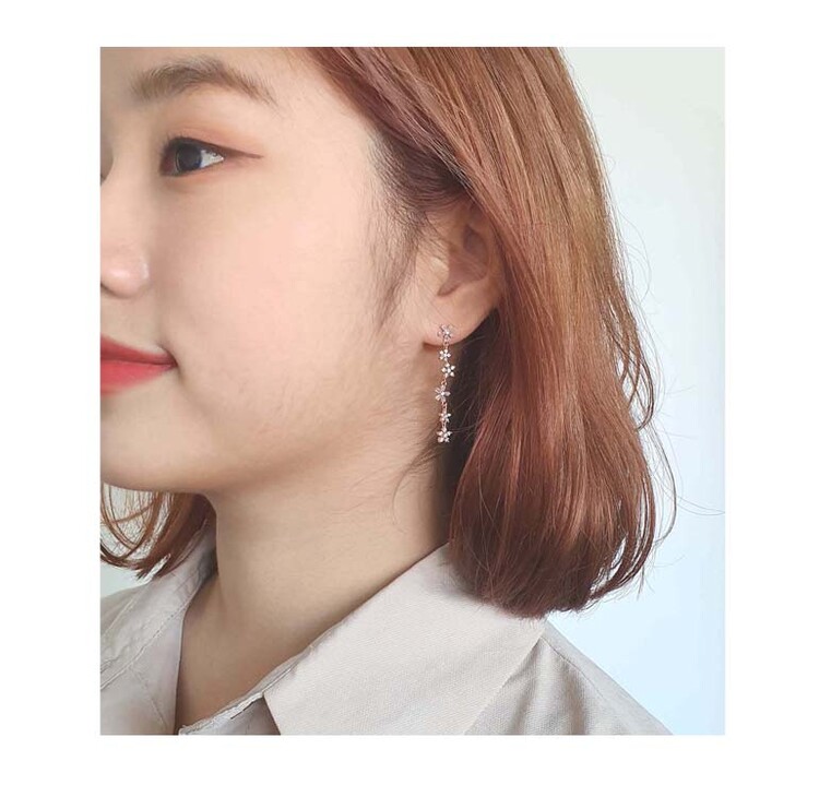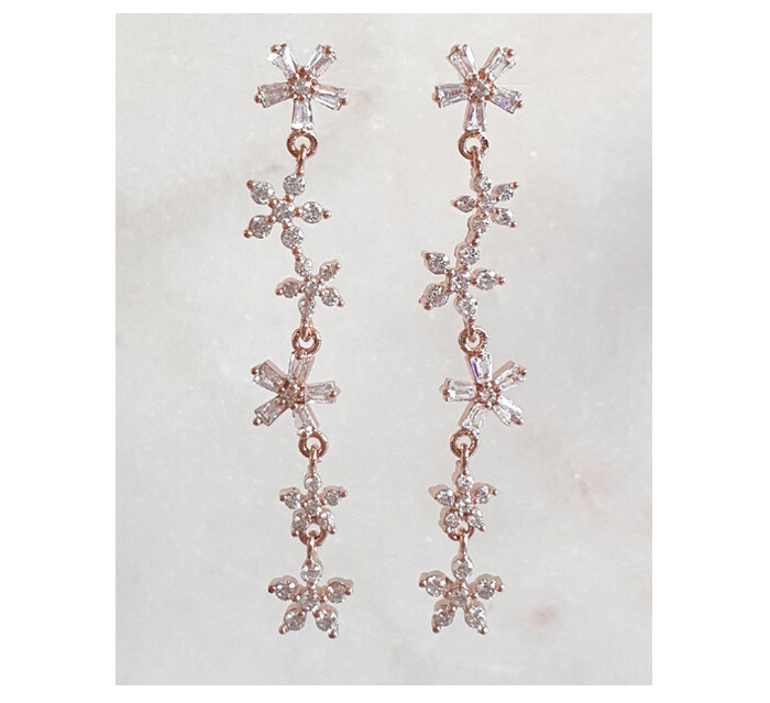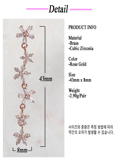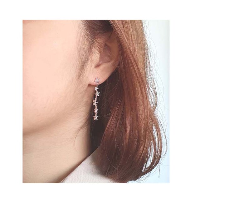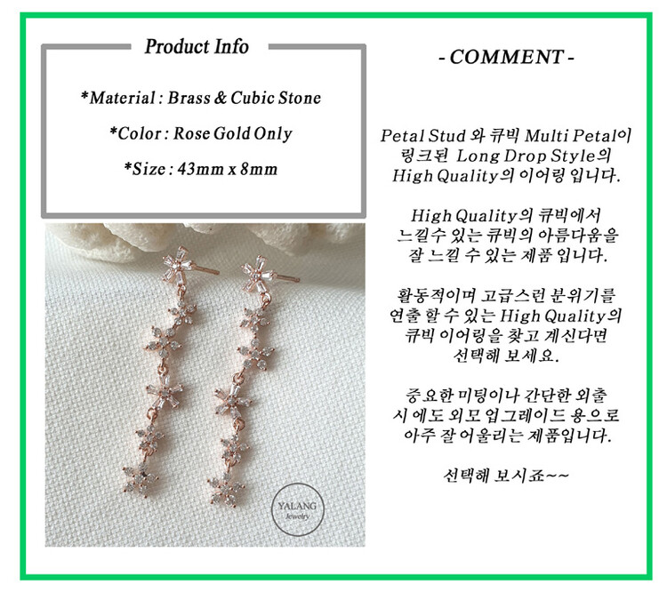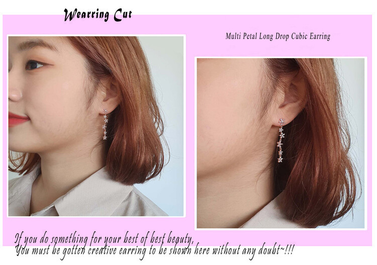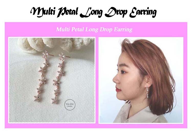Multi Petal Long Drop 큐빅 이어링(티타늄침)