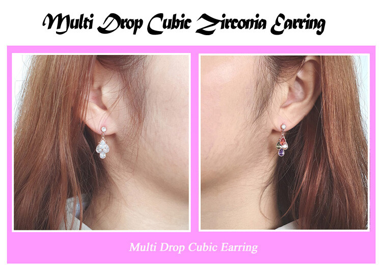 Multi Drop 큐빅 귀걸이(티타늄침)