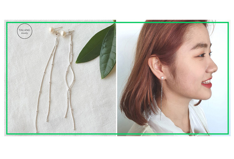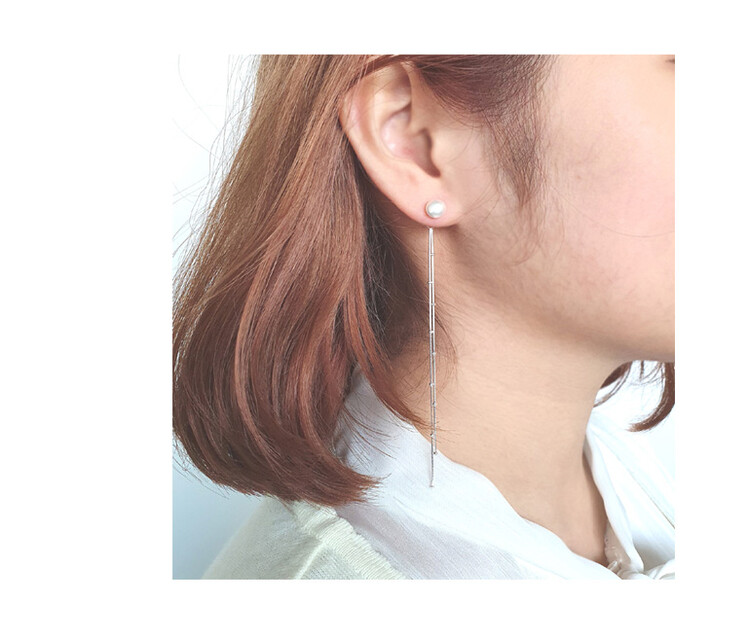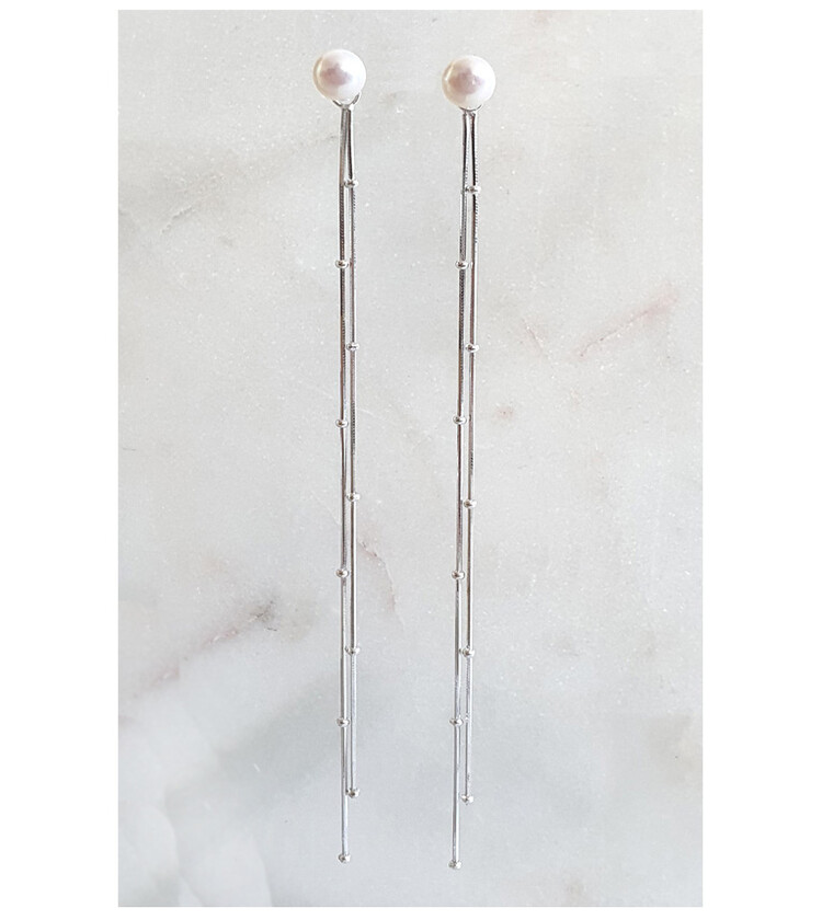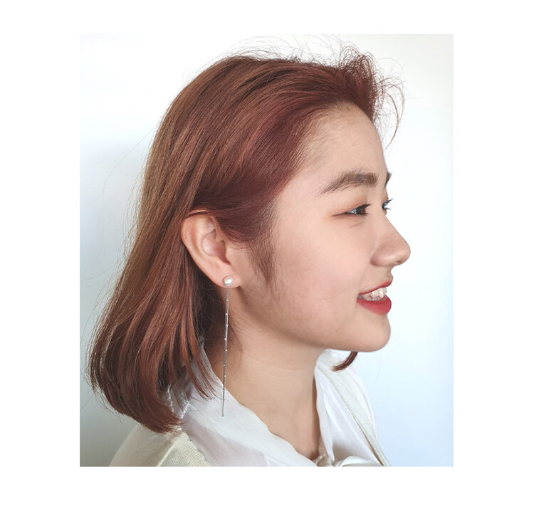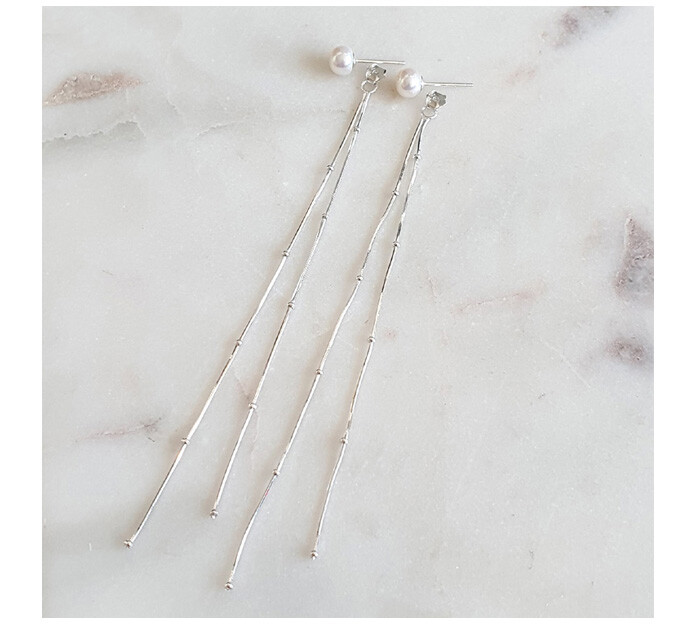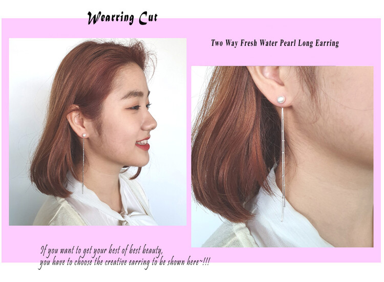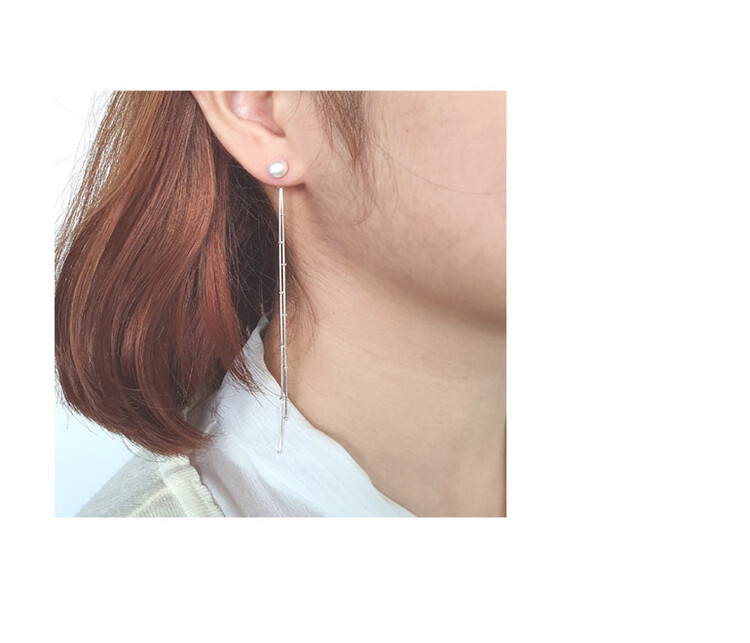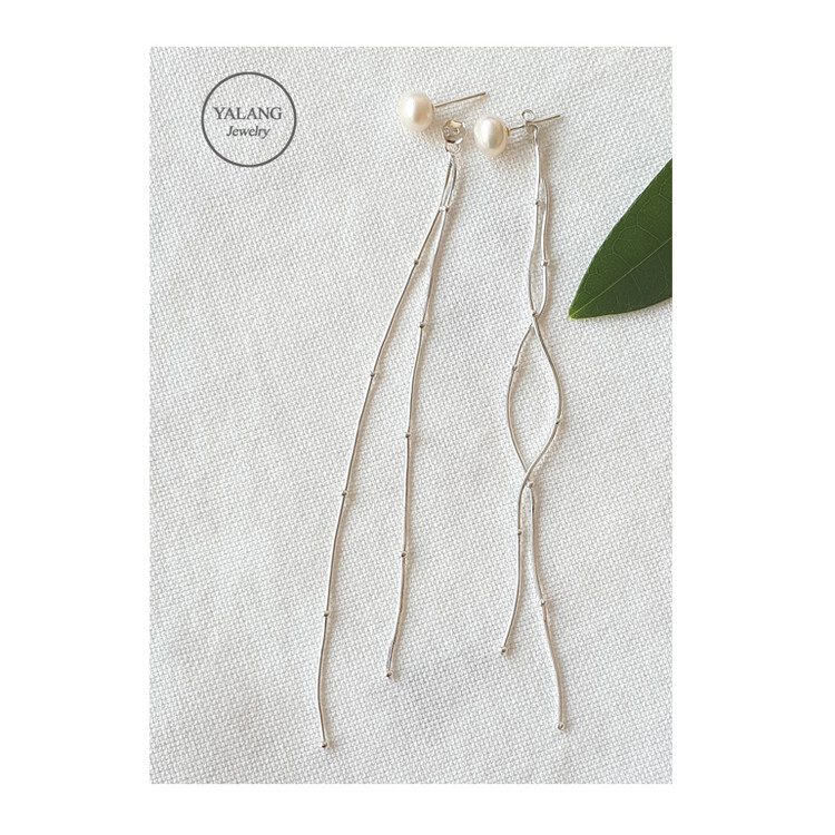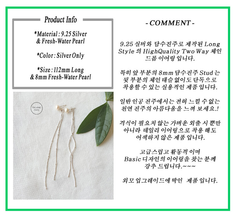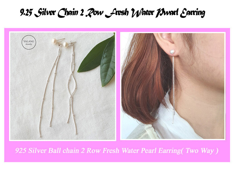 925 실버 Ball Chain 2 Raw 담수진주 이어링 ( Two Way )
