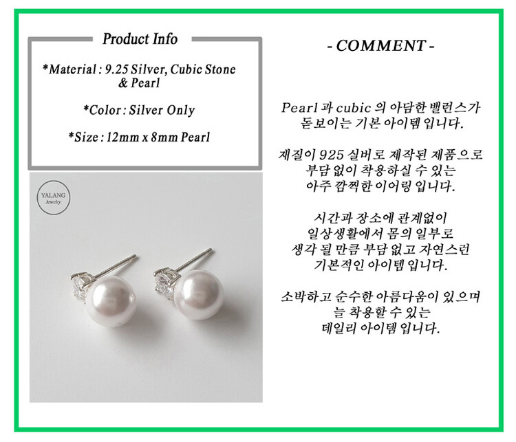 925 실버 pearl drop post earring