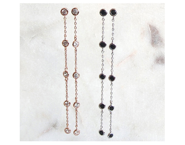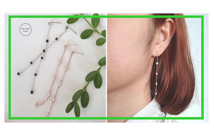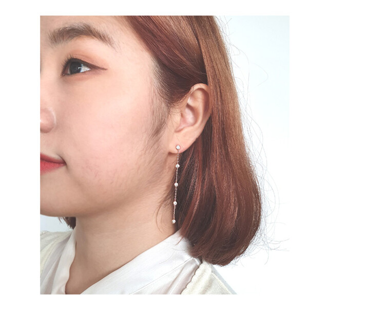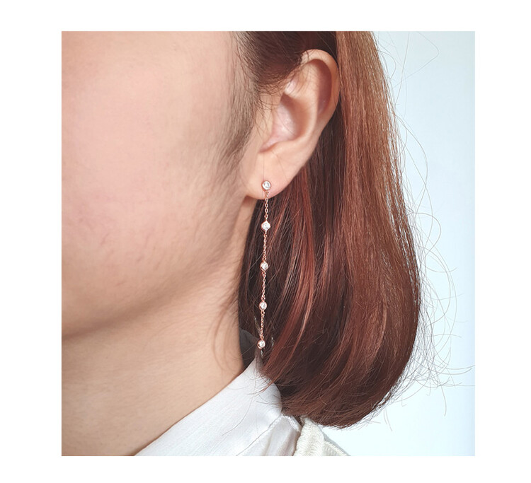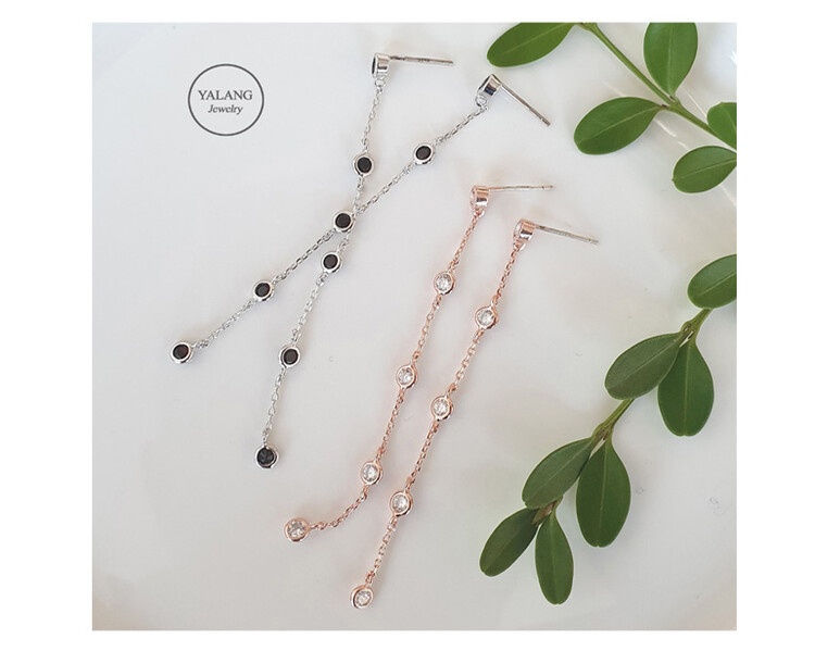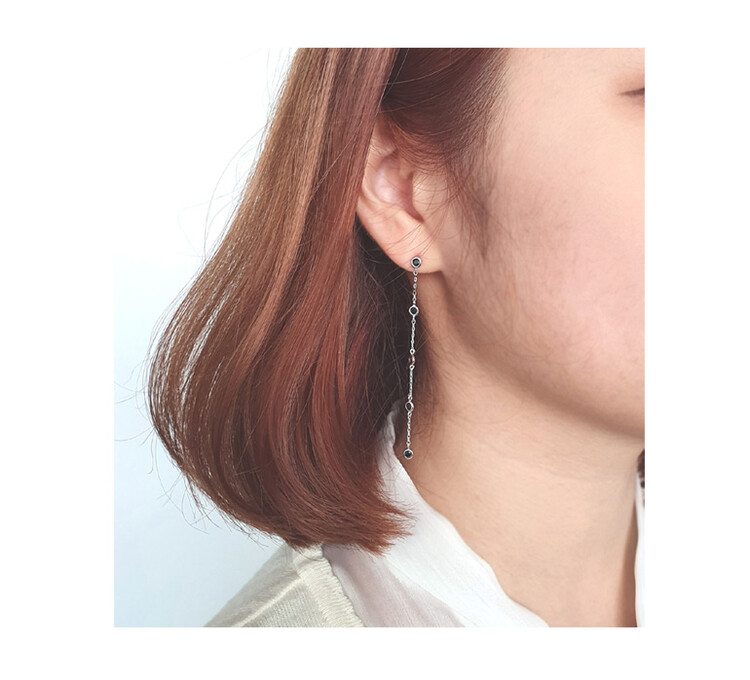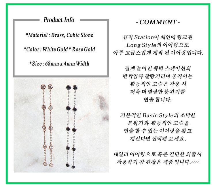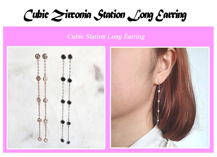 큐빅 Station Long 이어링(은침)