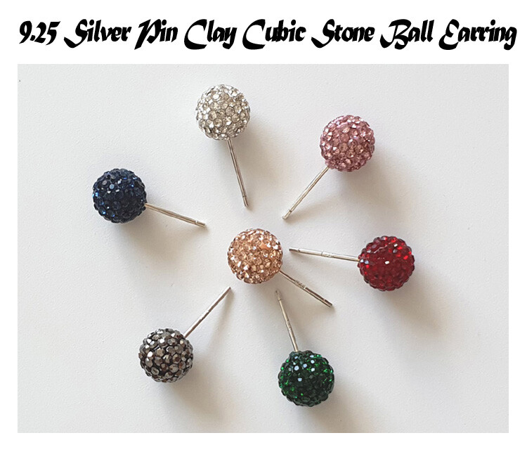 925 실버침 Clay 큐빅 Stone Ball 귀걸이