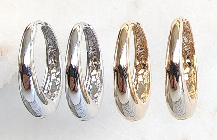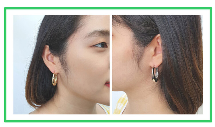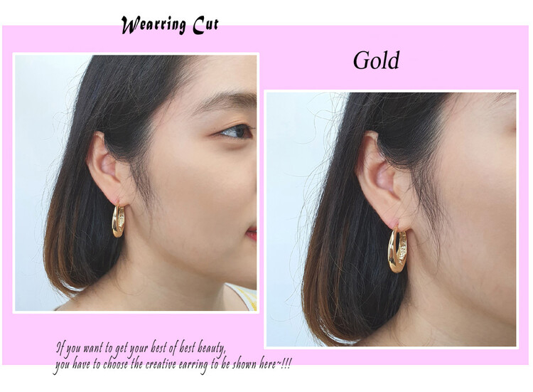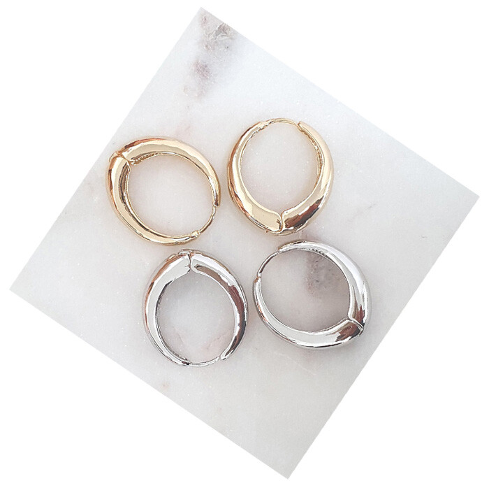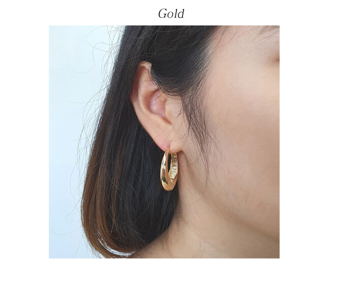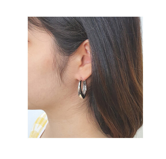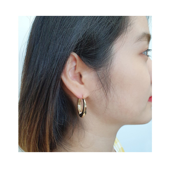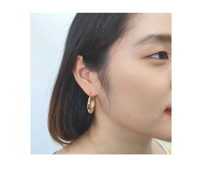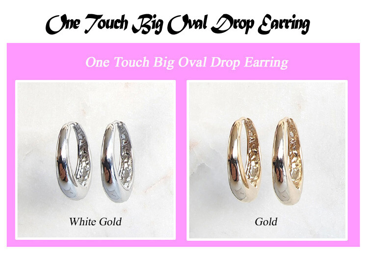 원터치 큰 오발 드롭 귀걸이