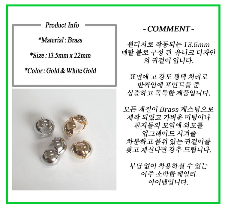 원터치 13mm Ball 귀걸이