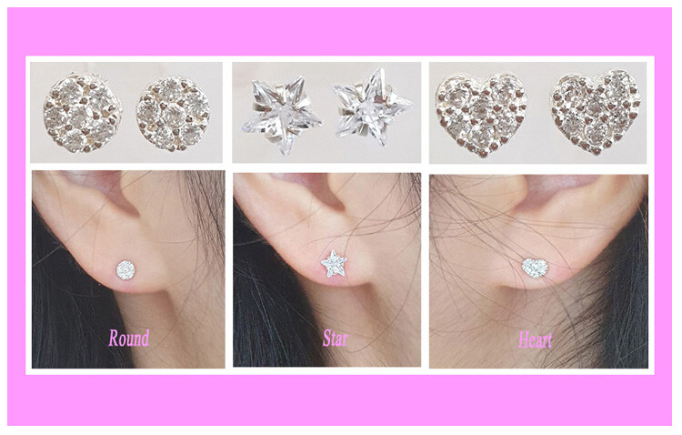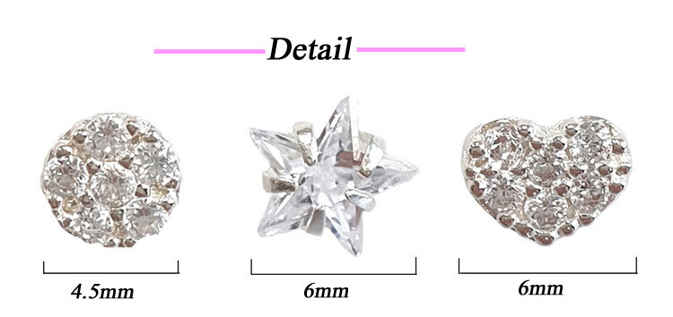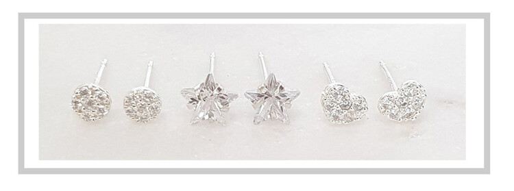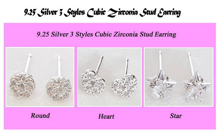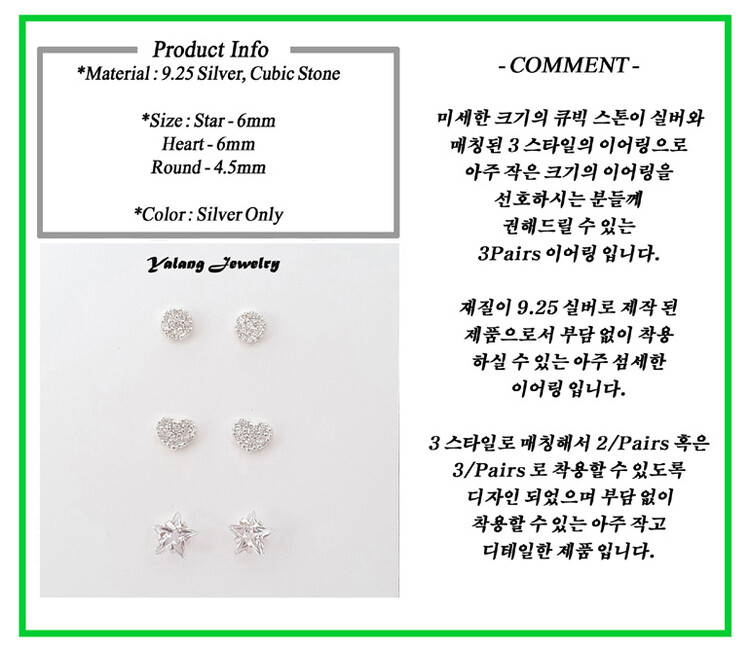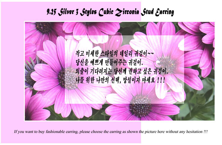 925 실버 3 Styles 큐빅 스터드 귀걸이
