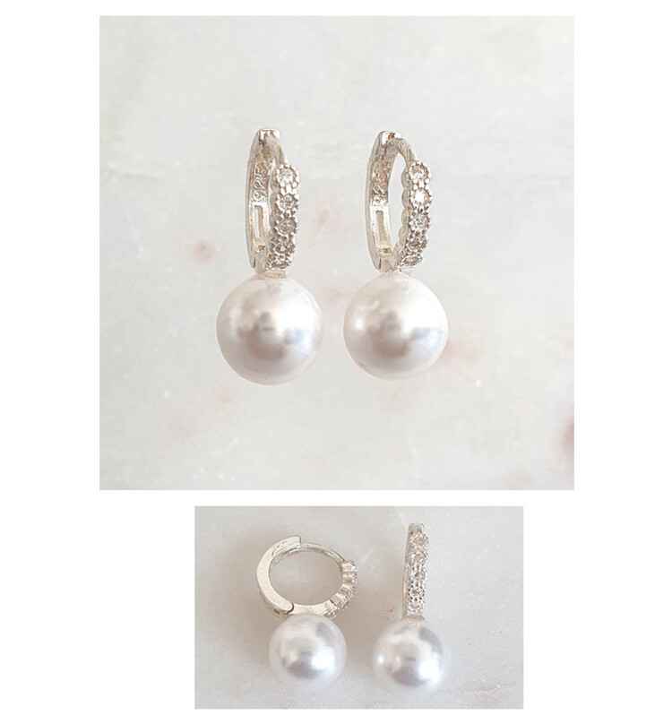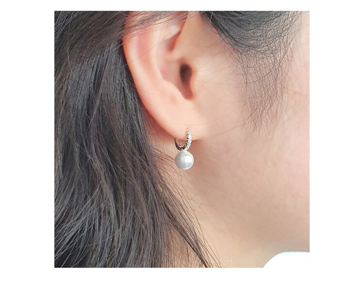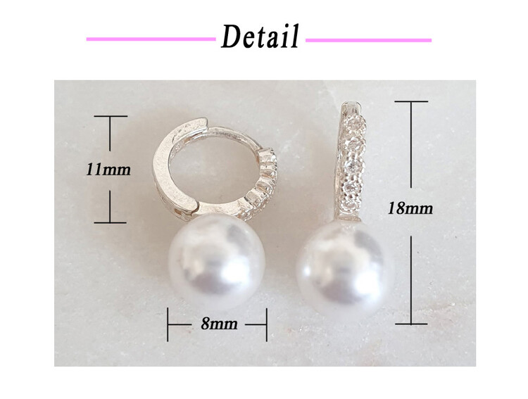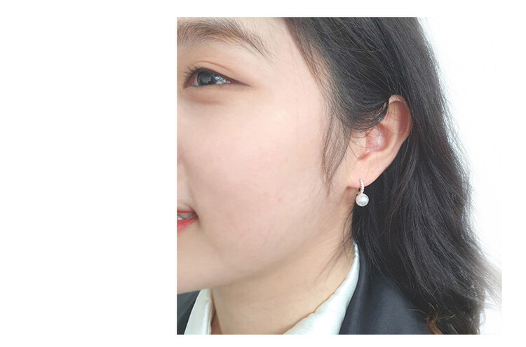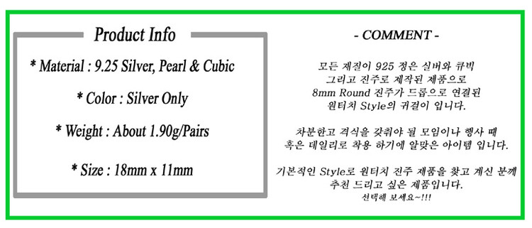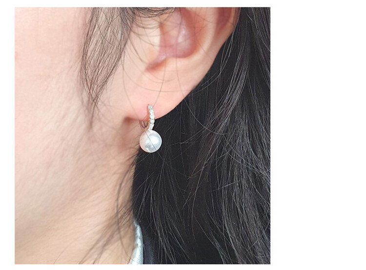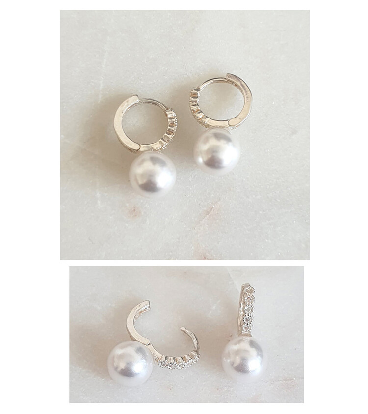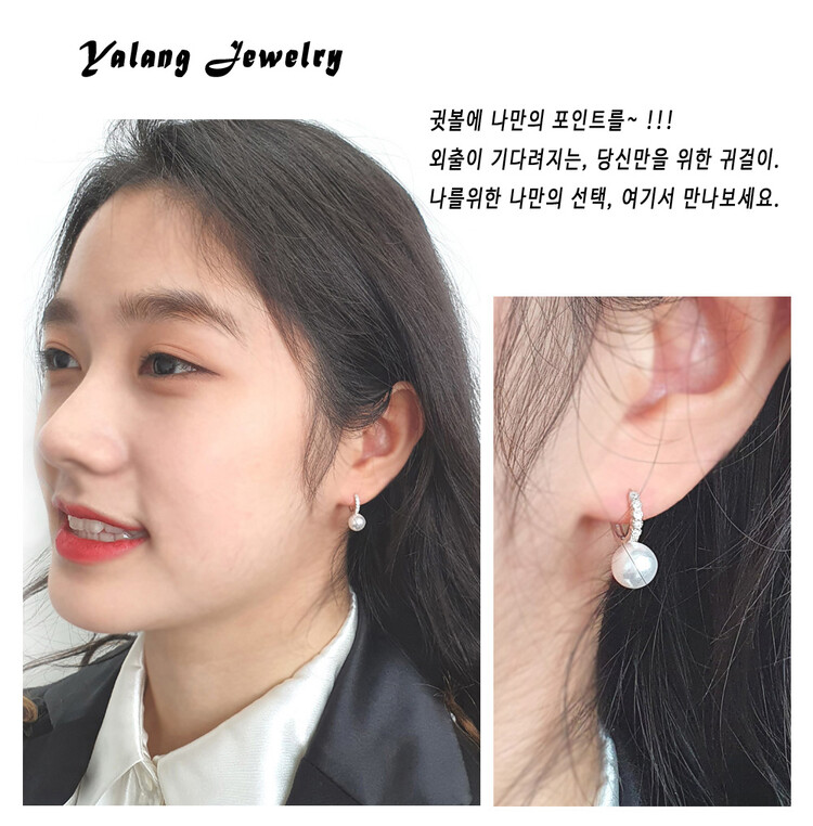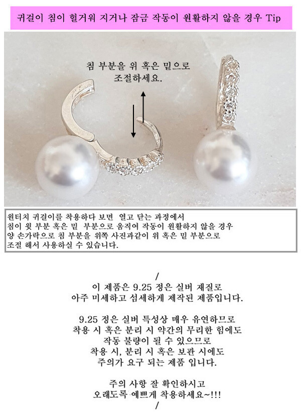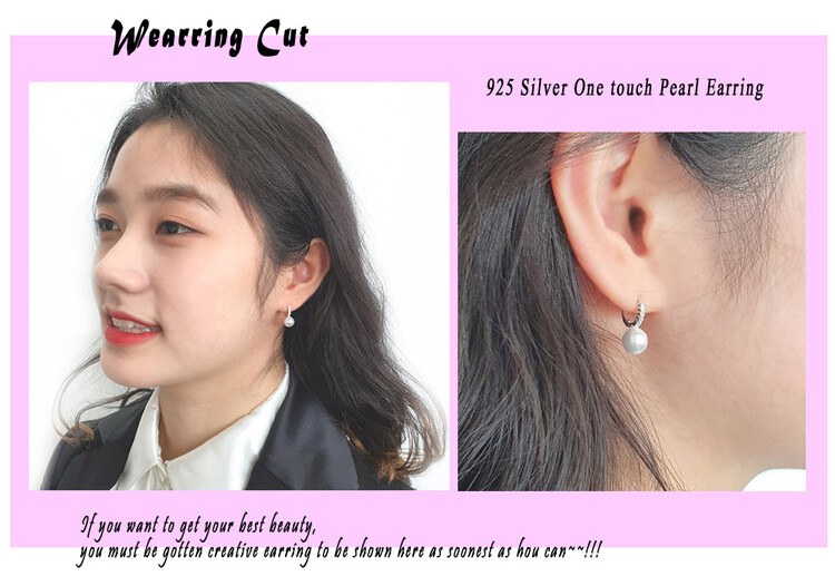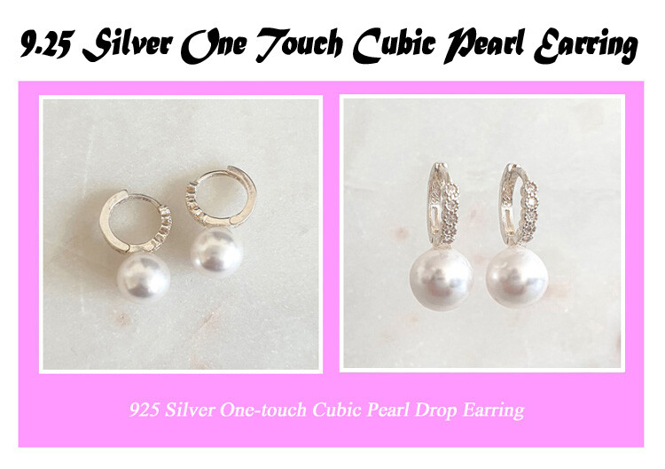925실버 원터치 큐빅 진주 드롭 귀걸이