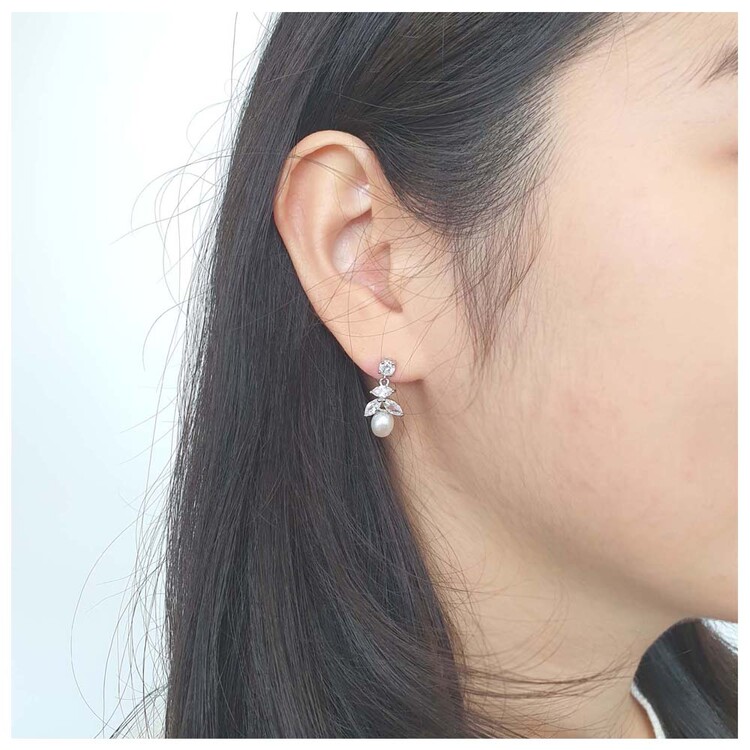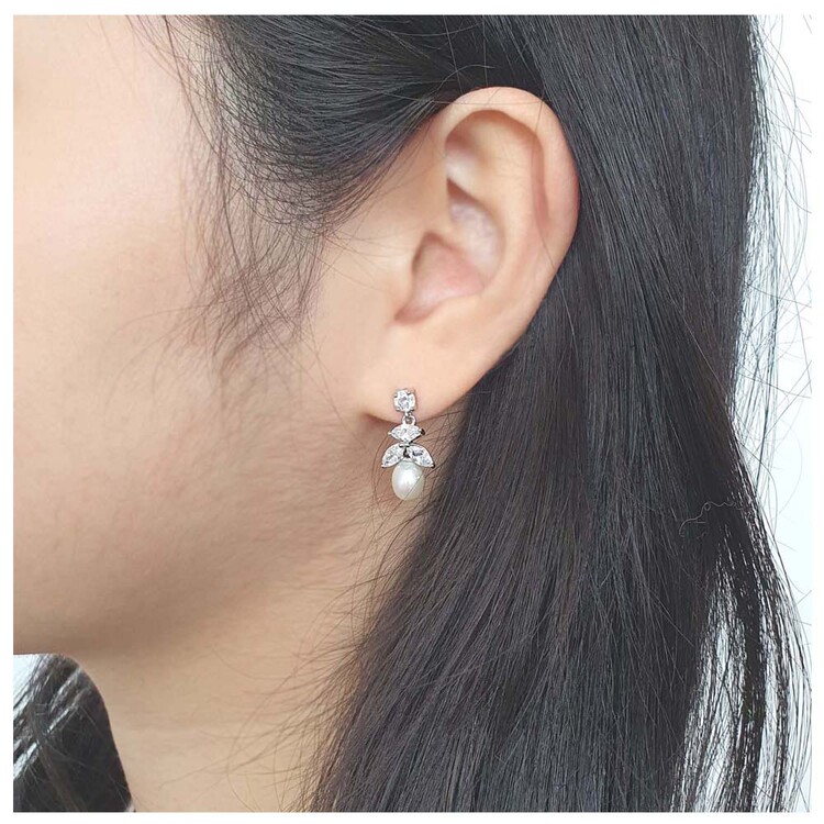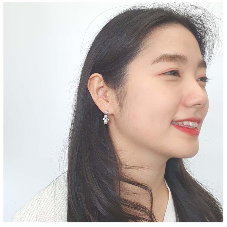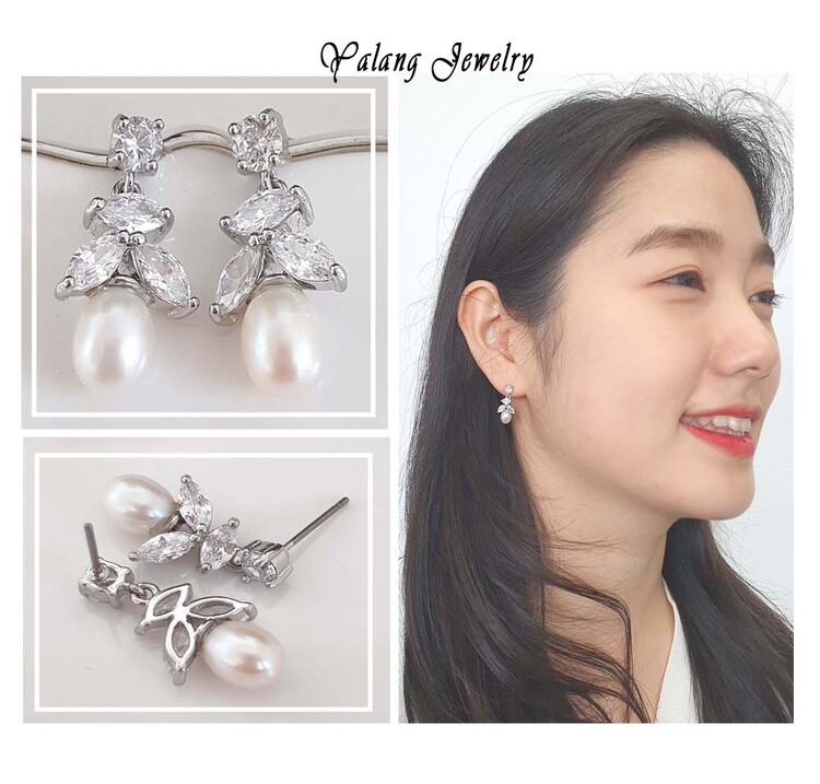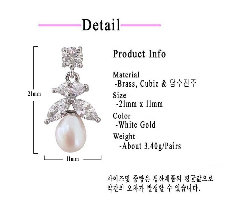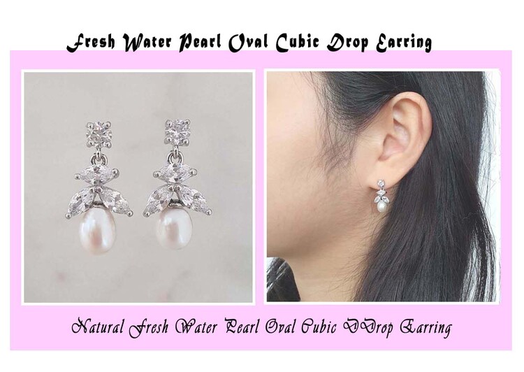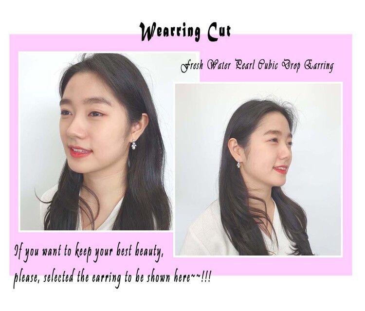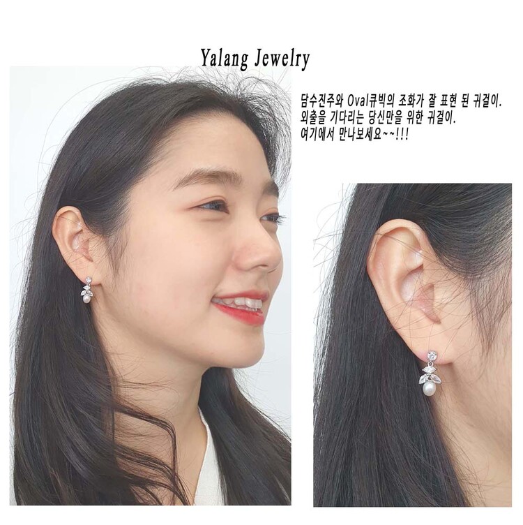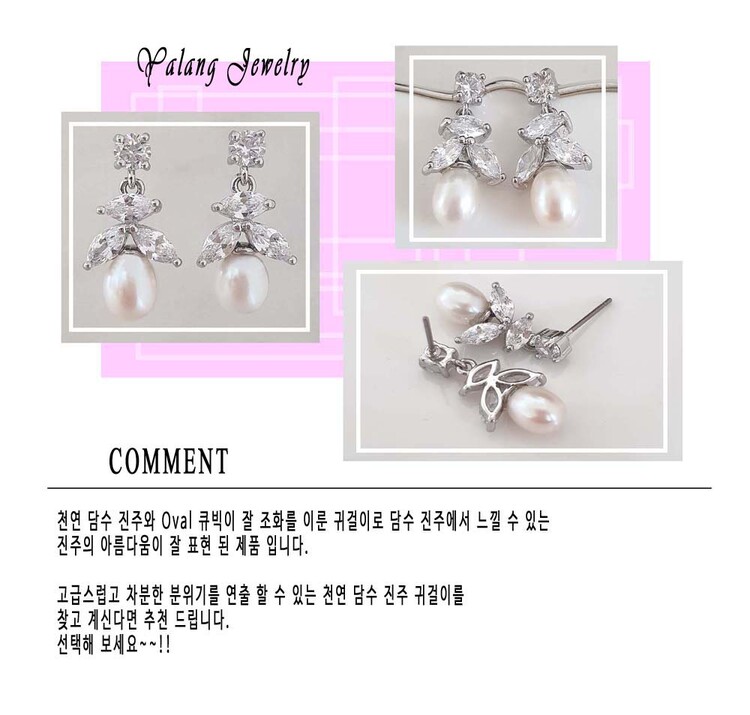 천연 담수진주 Oval 큐빅 Drop 귀걸이