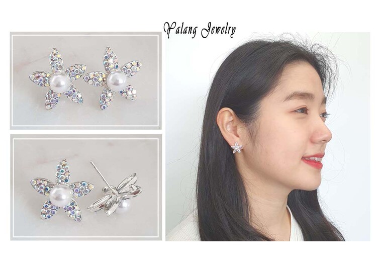 Rainbow Petal 진주 귀걸이