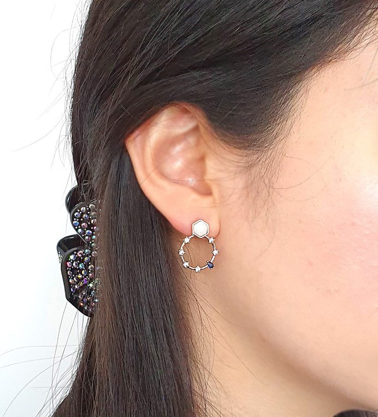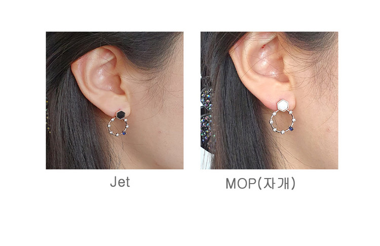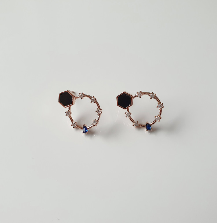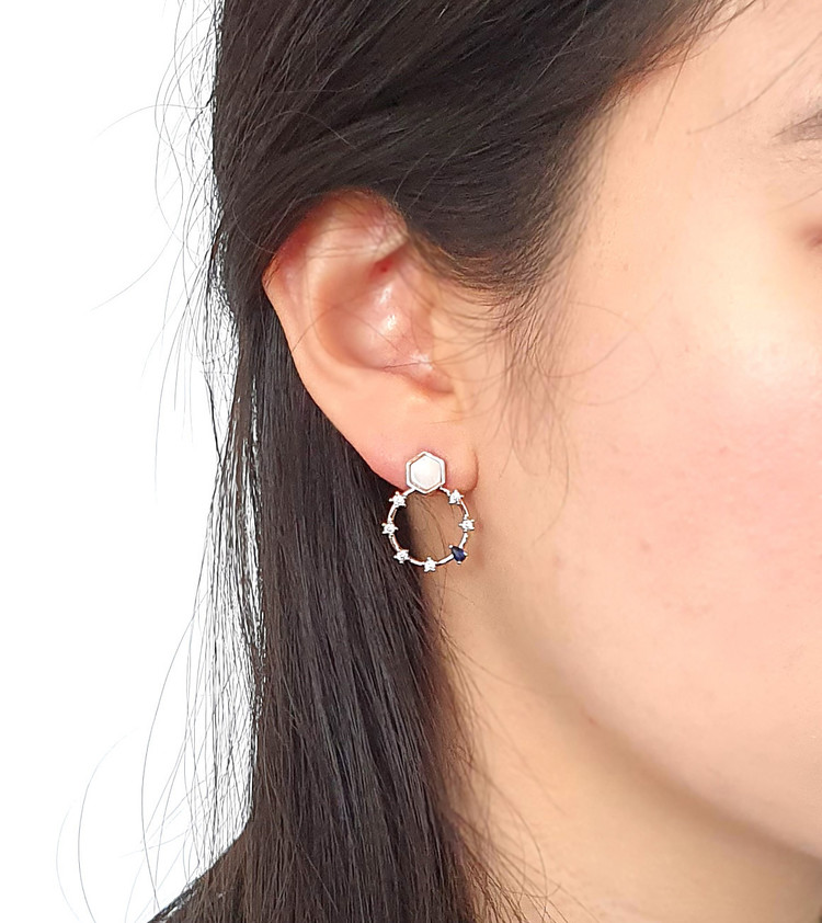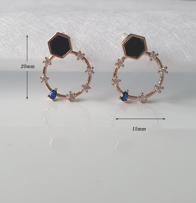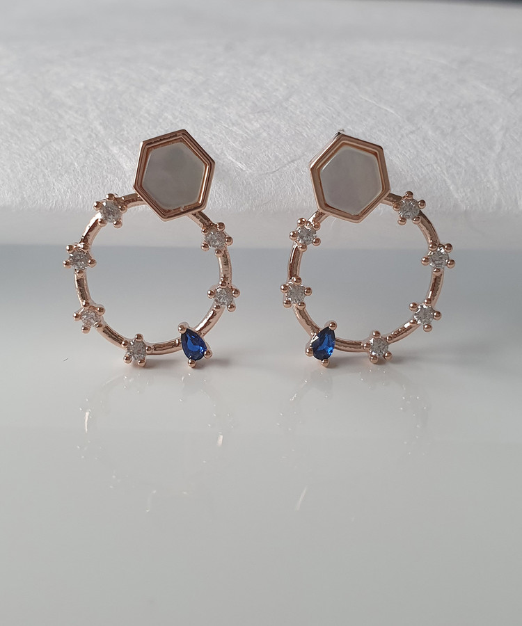 써클링 옆부분에 Navy 컬러의 삼각 Drop 큐빅스톤을