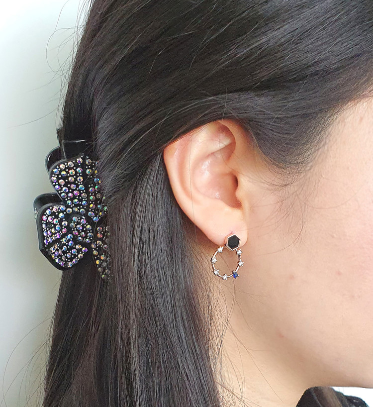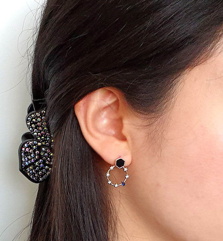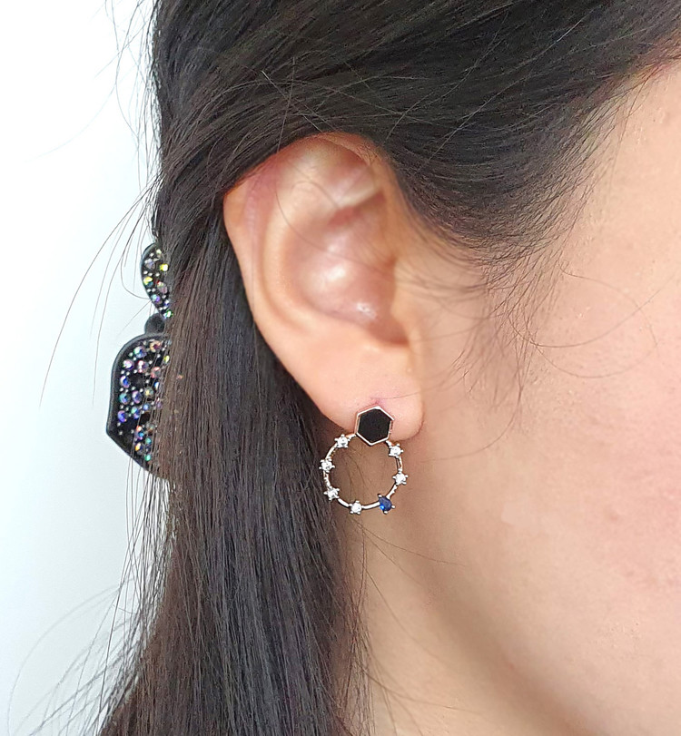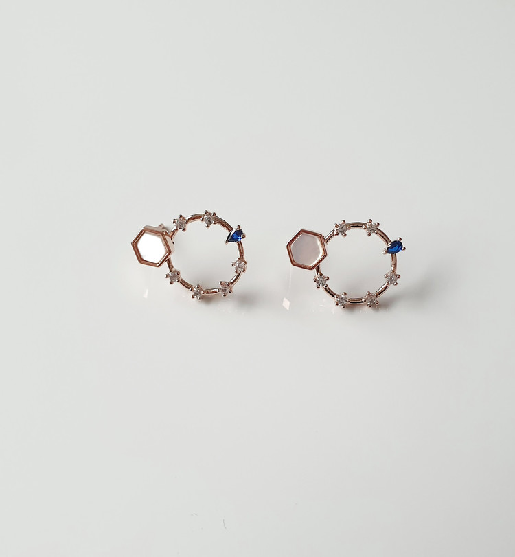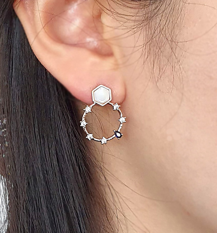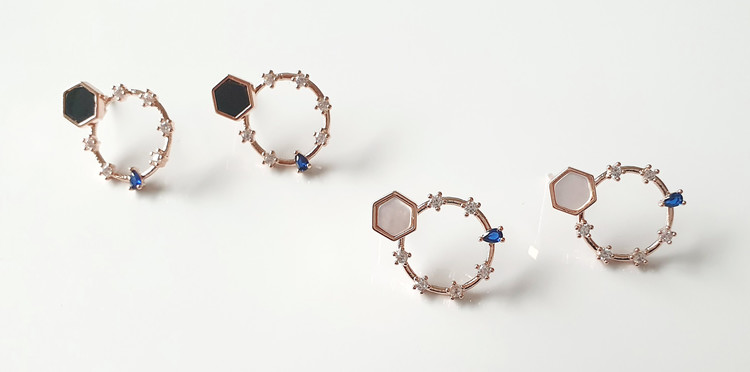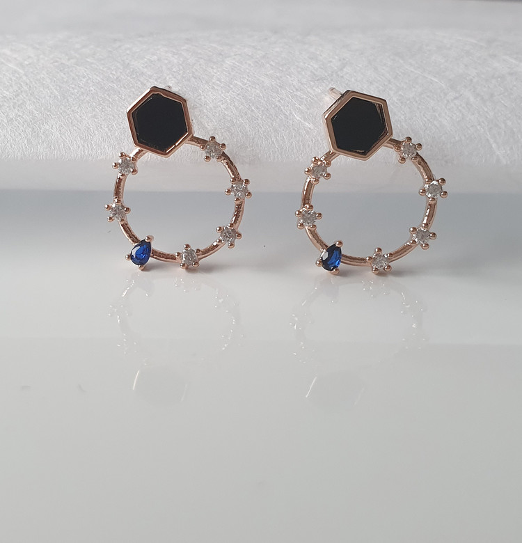 써클링 옆부분에 Navy 컬러의 삼각 Drop 큐빅스톤을