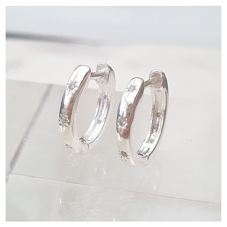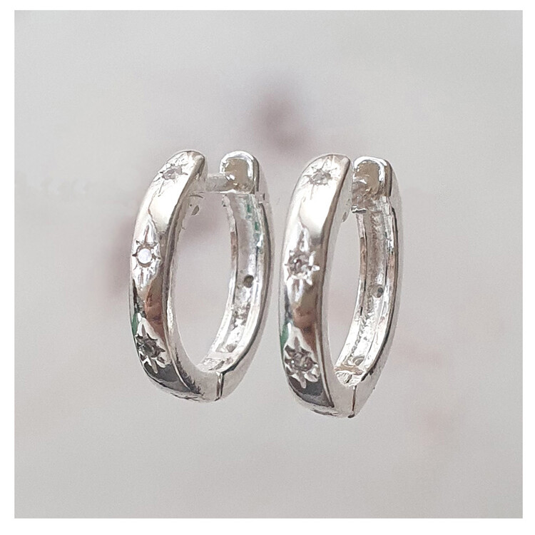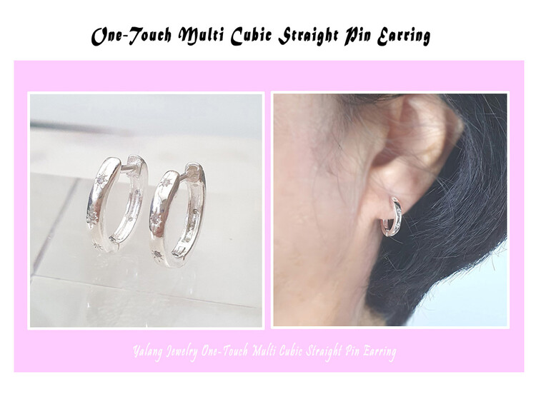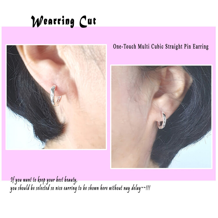 925실버 원터치 멀티큐빅 일자핀 귀걸이