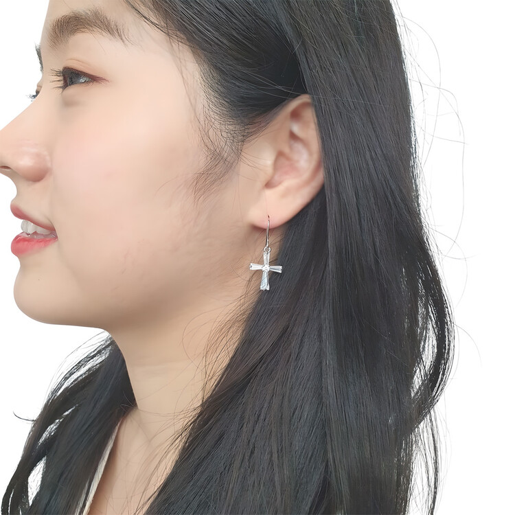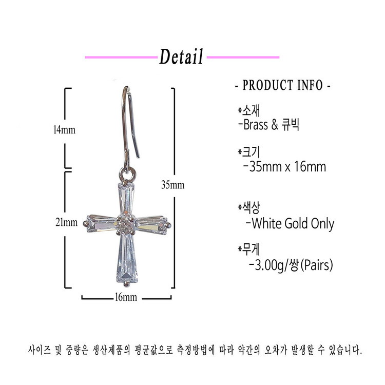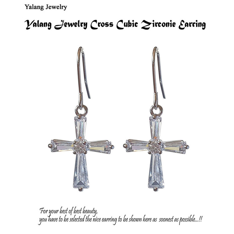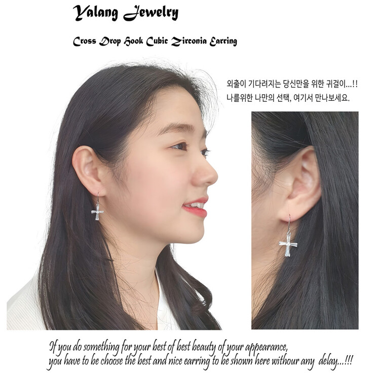 야랑쥬얼리 크로스드롭 큐빅 귀걸이
