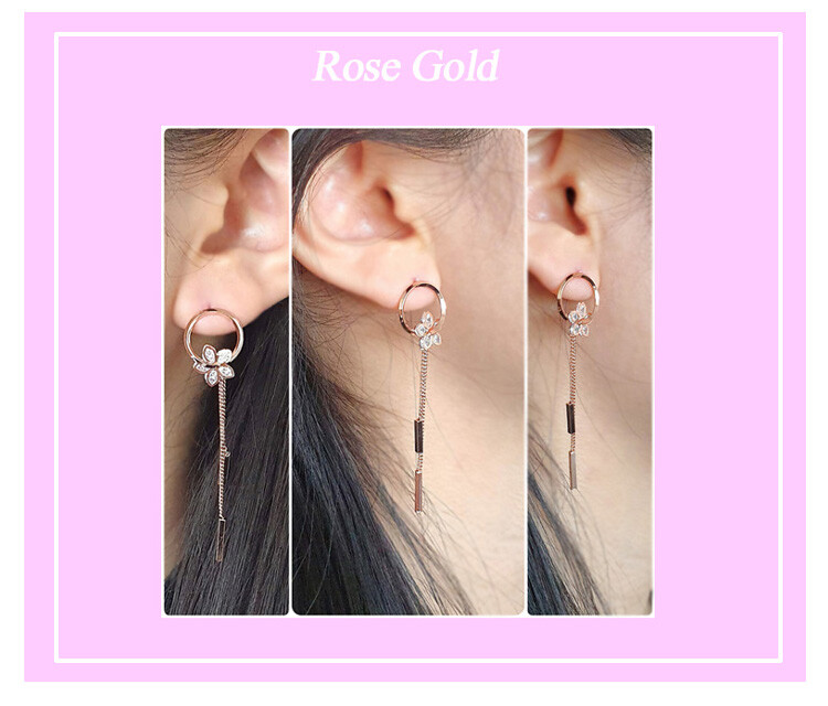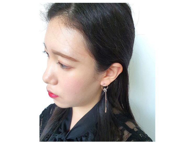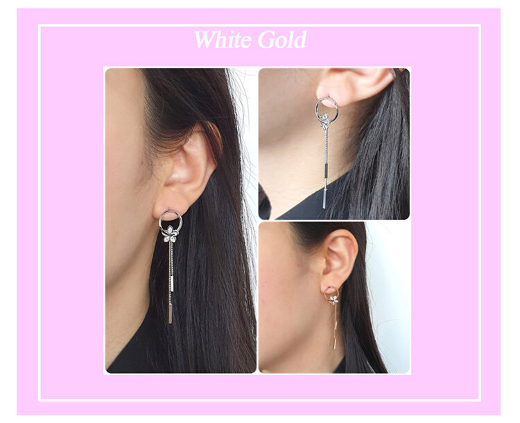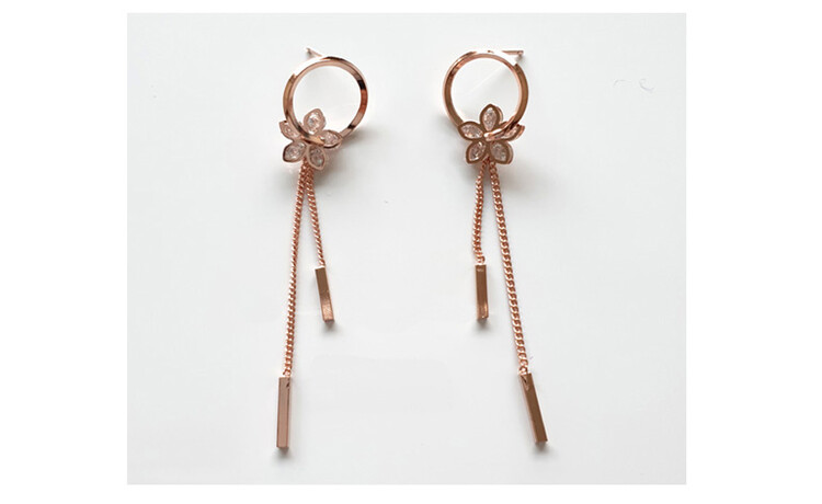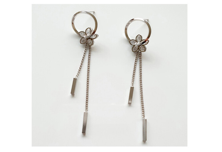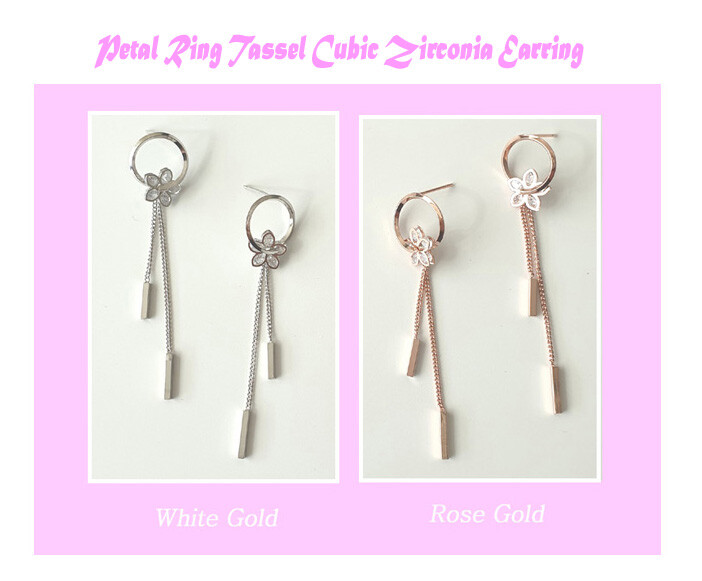 Petal ring tassel cubic earring ( 은침 )