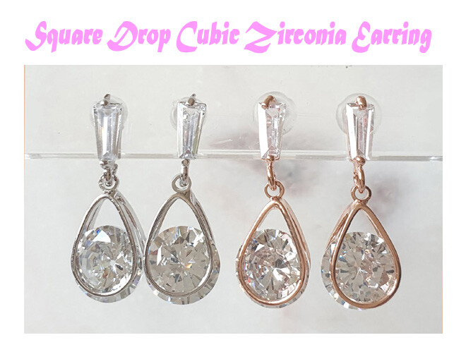 Square drop cubic earring ( 은침 )