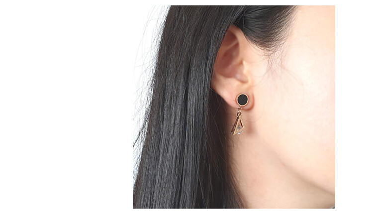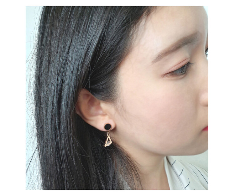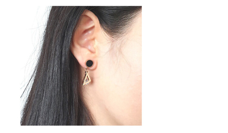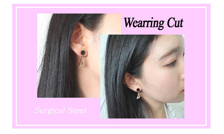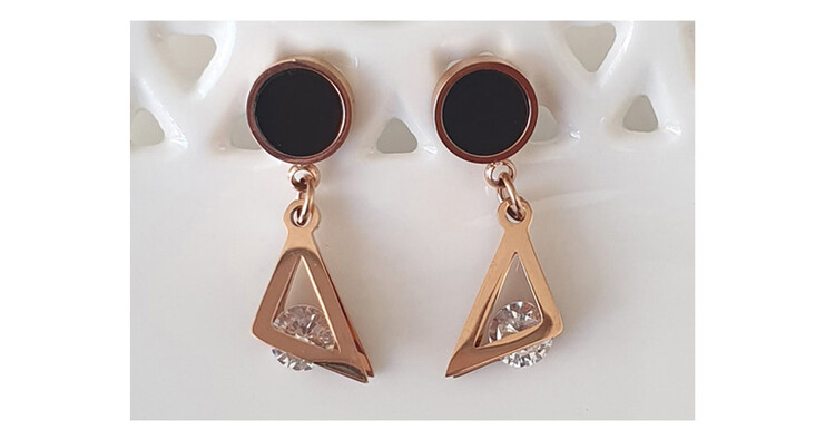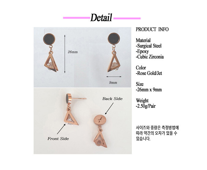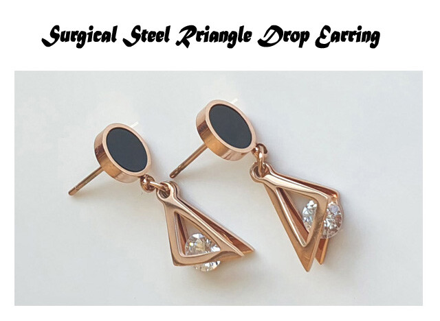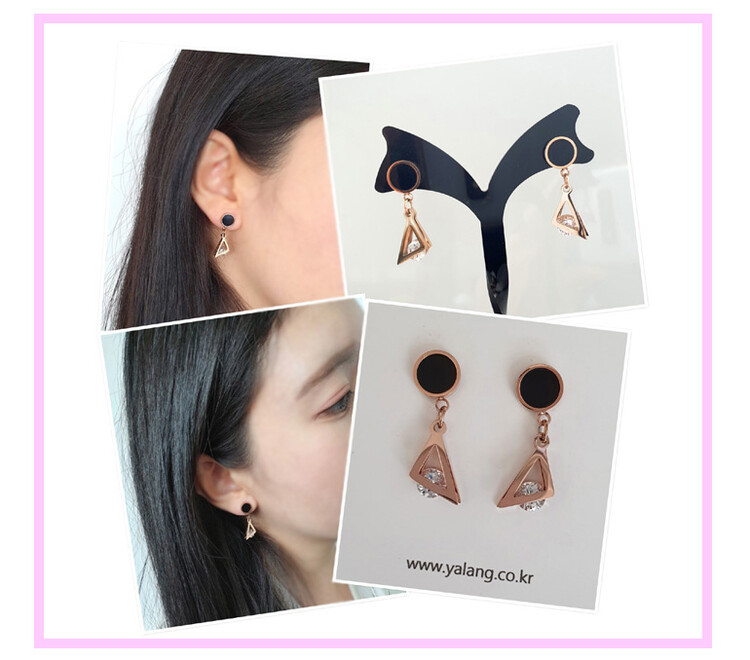 써지컬스틸 겹삼각 큐빅드롭 이어링