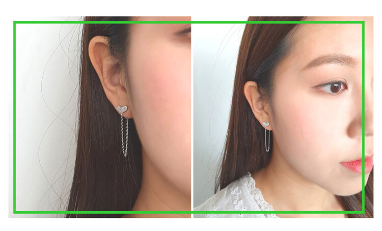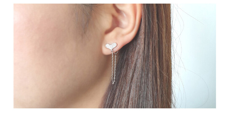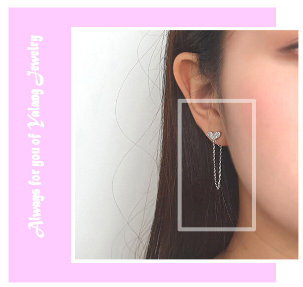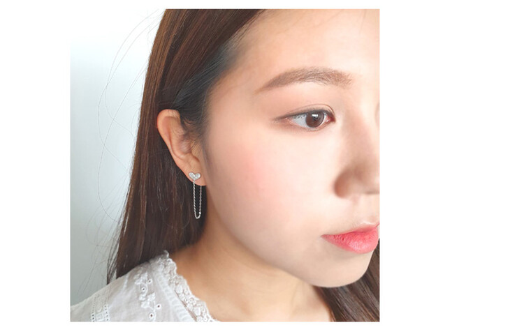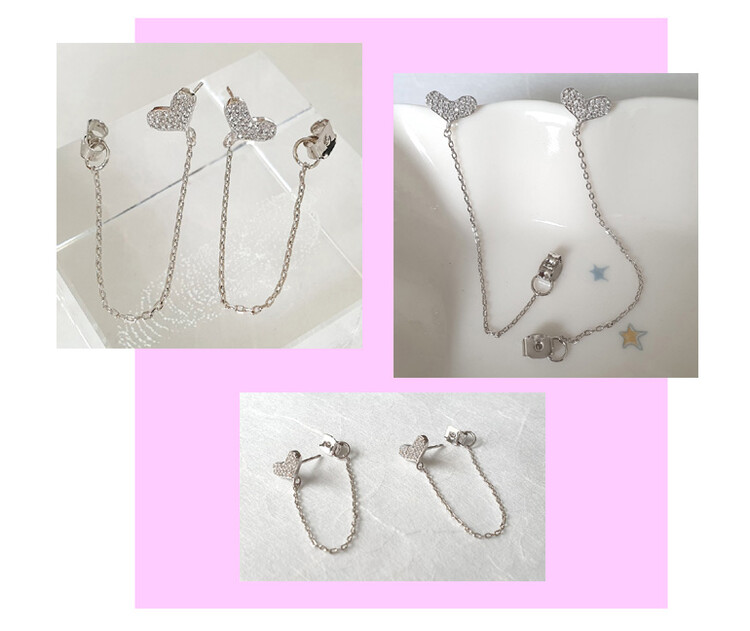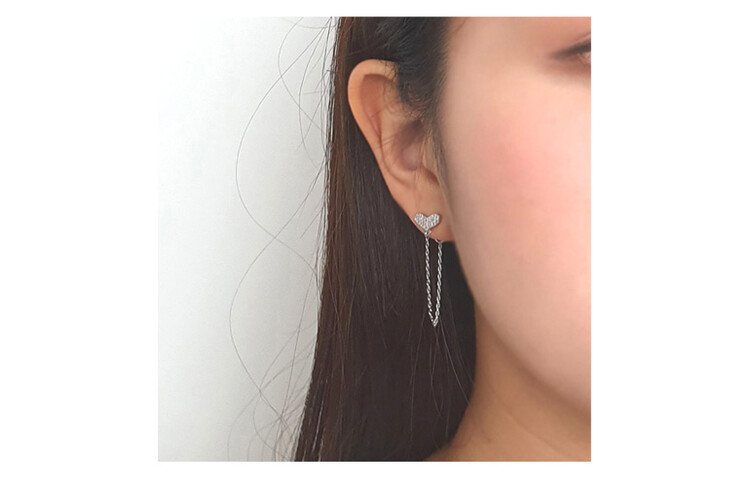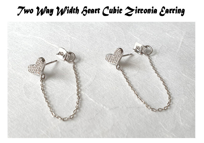 Two way 넓은 하트큐빅 earring ( 은침 )