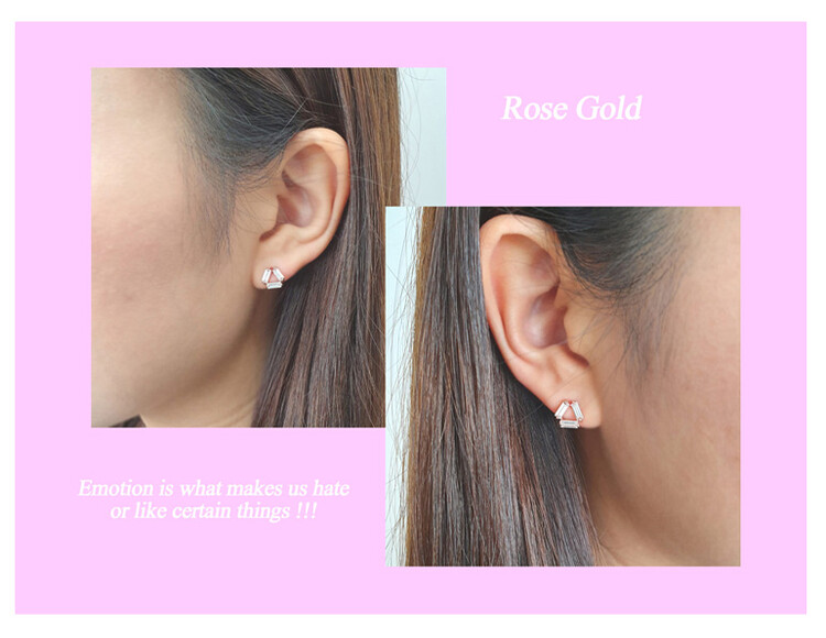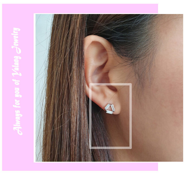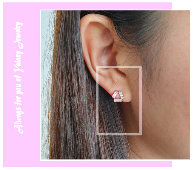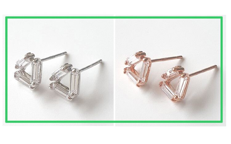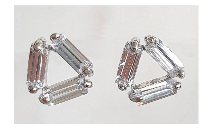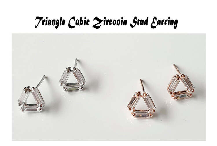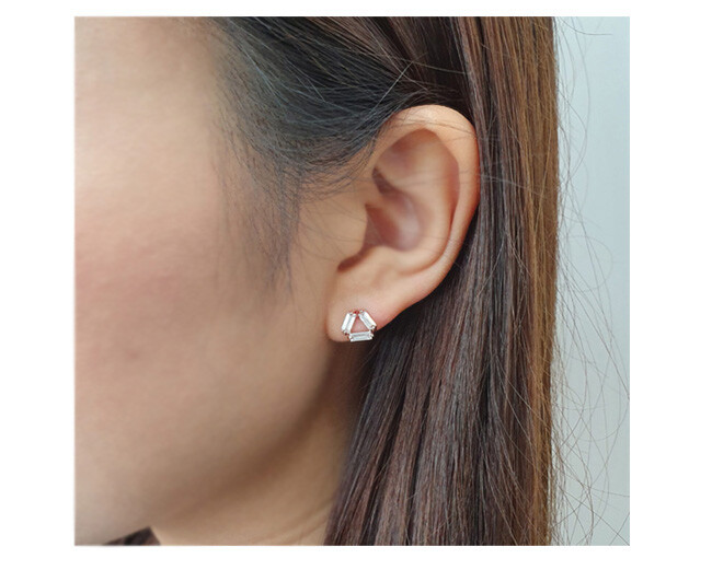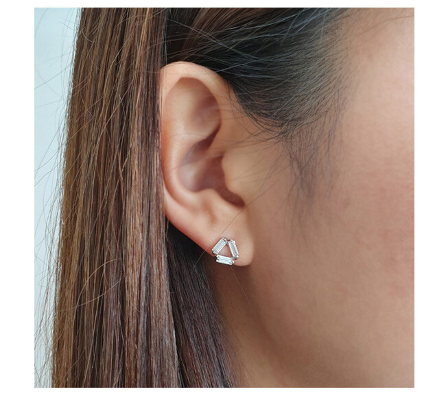 Triangle 직사각 큐빅 이어링 ( 은침 )