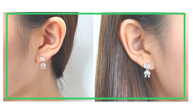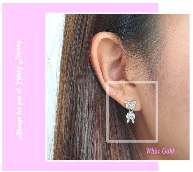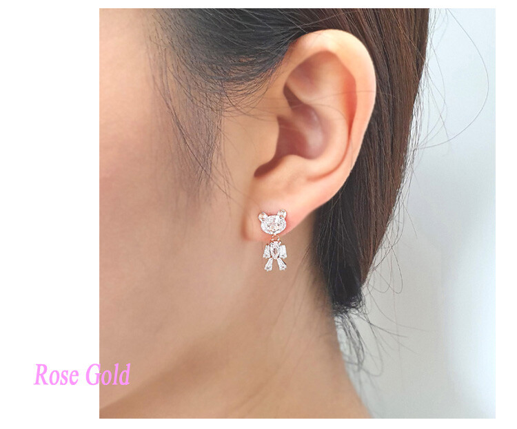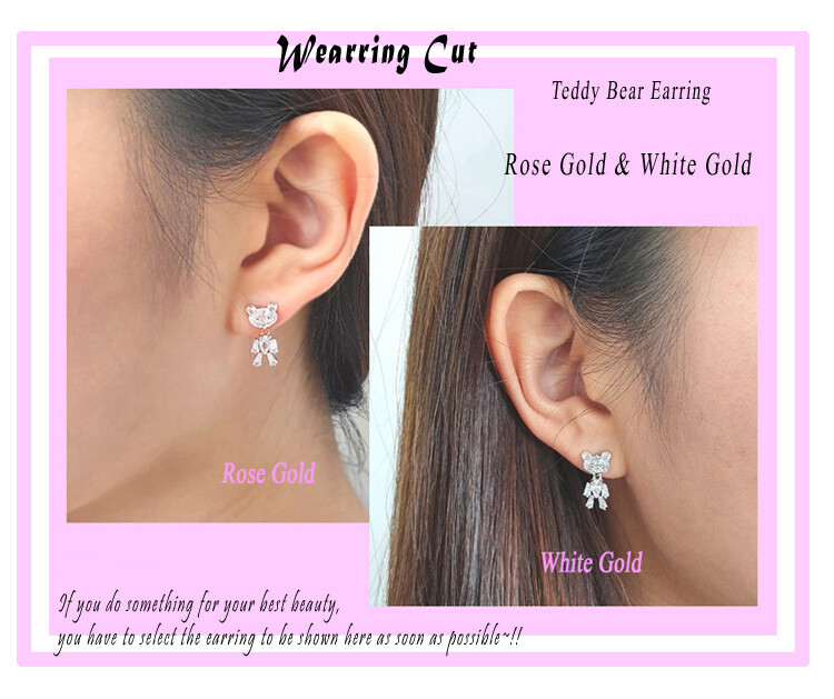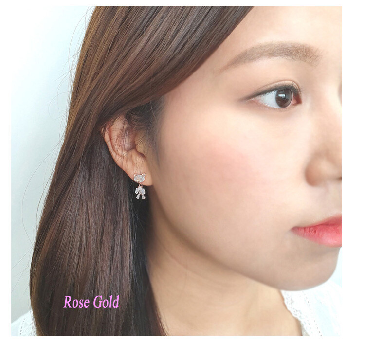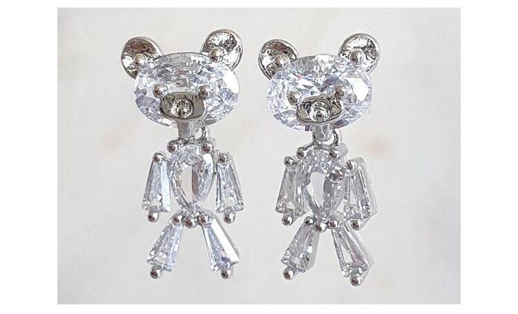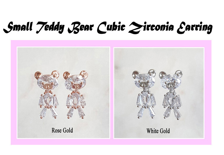 꼬마 테디베어 cubic earring ( 은침 )