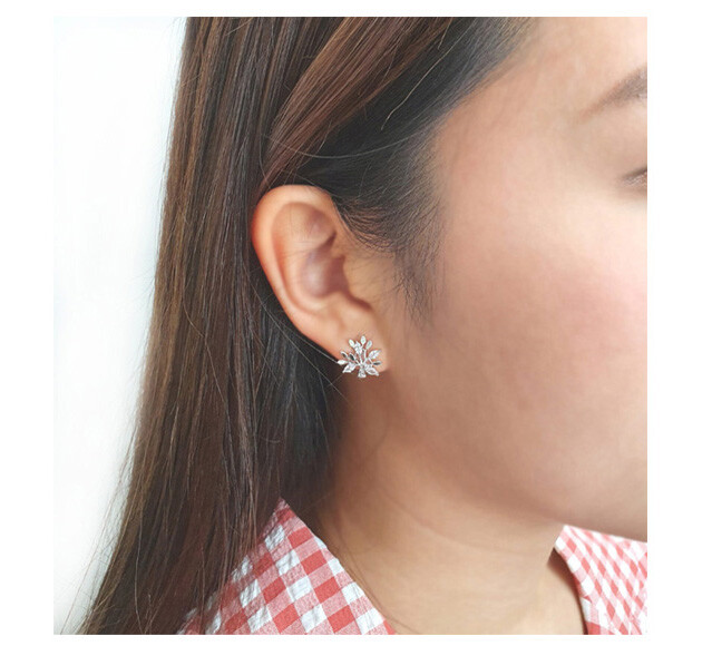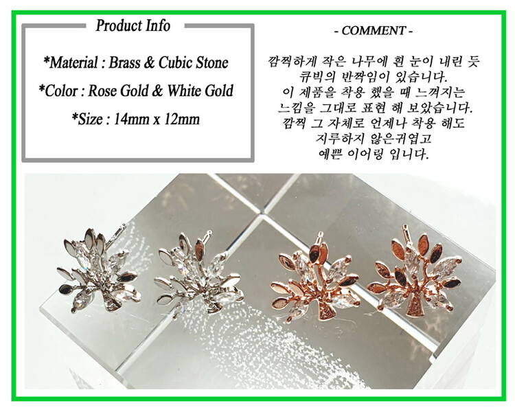 눈꽃송이 나무 귀걸이 ( 은침 )