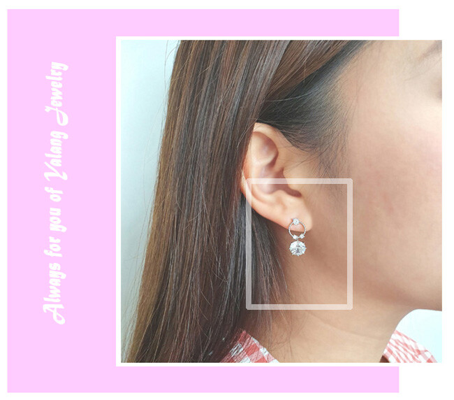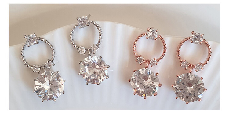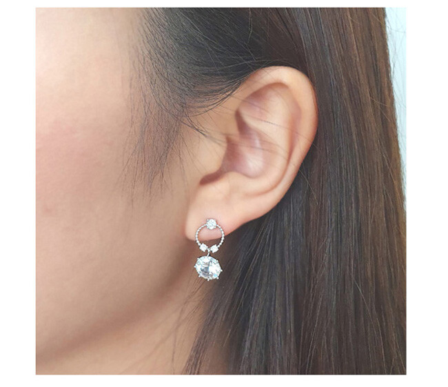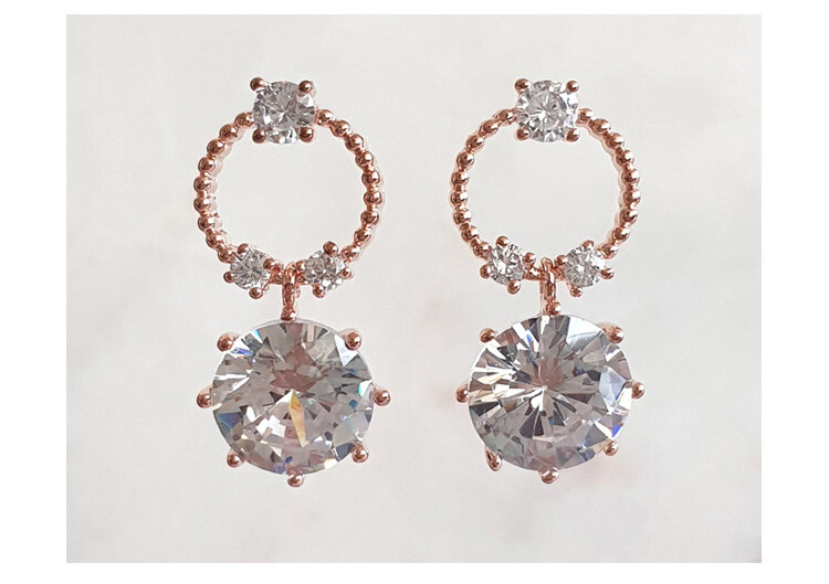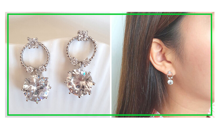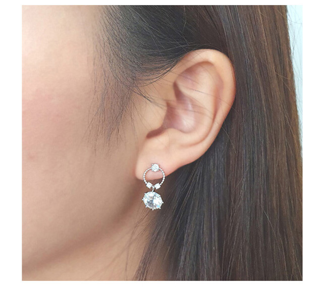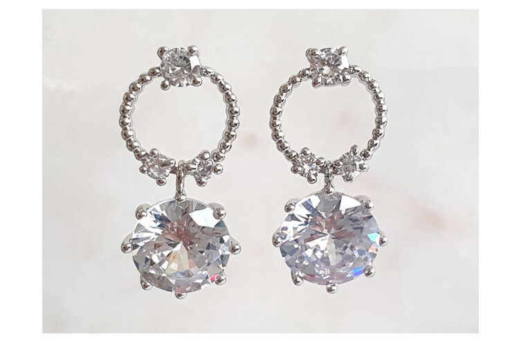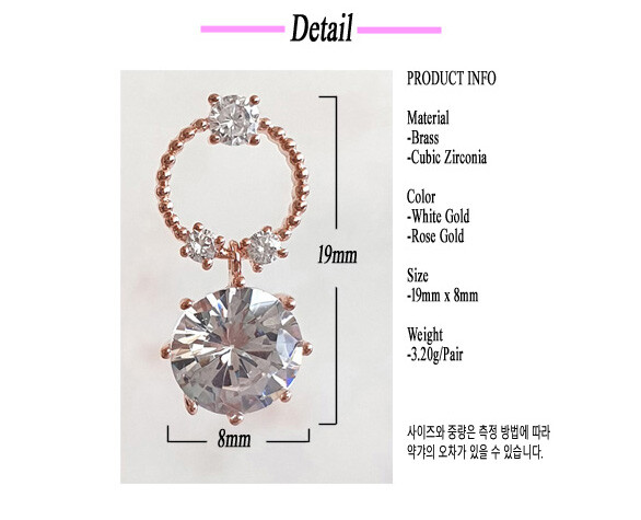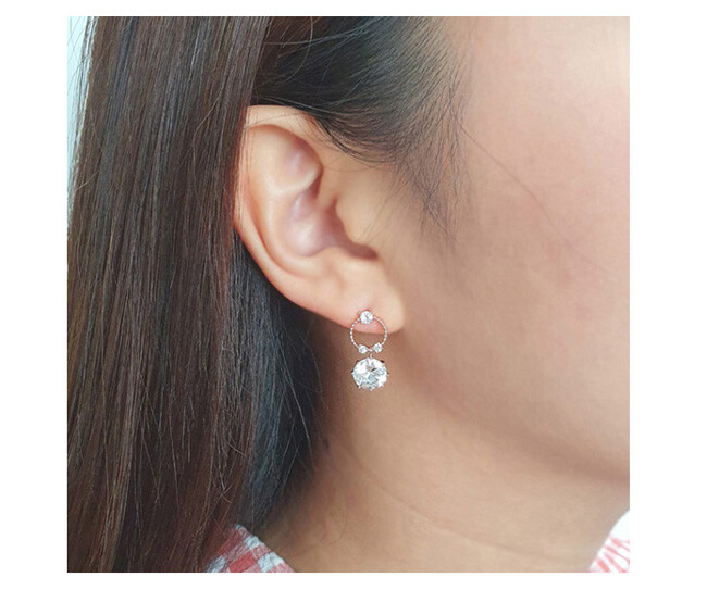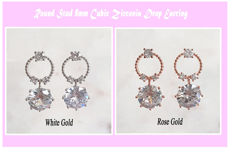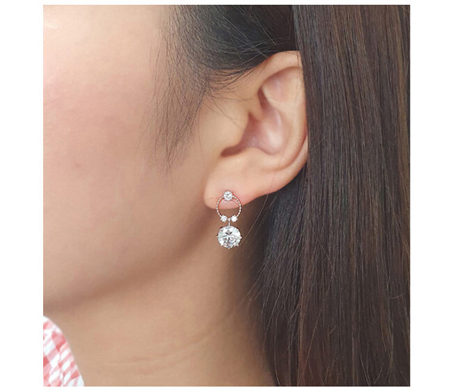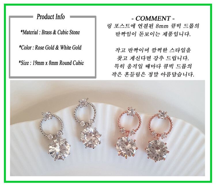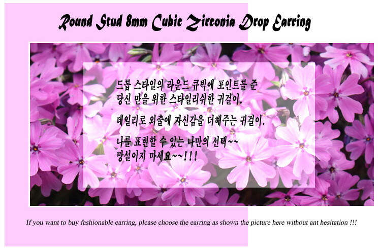 Round post 8mm 큐빅 drop earring(은침)