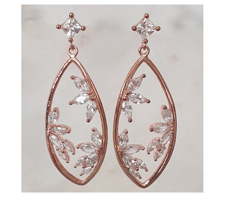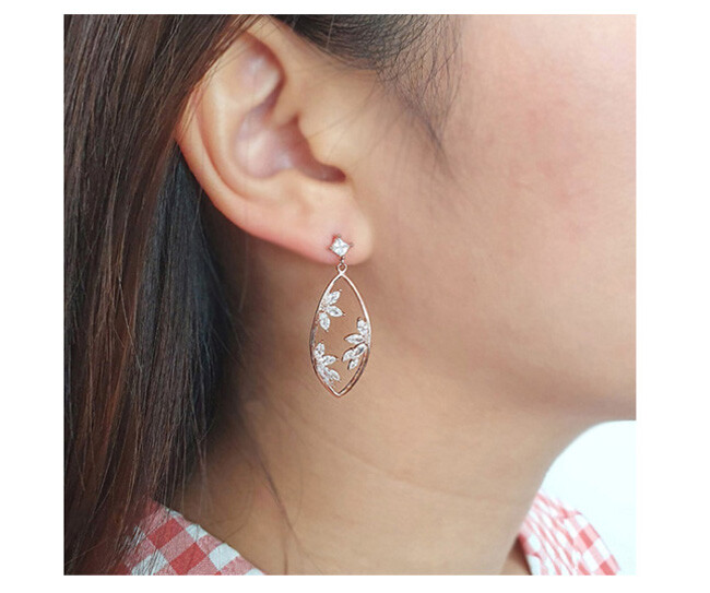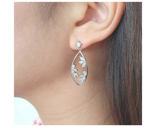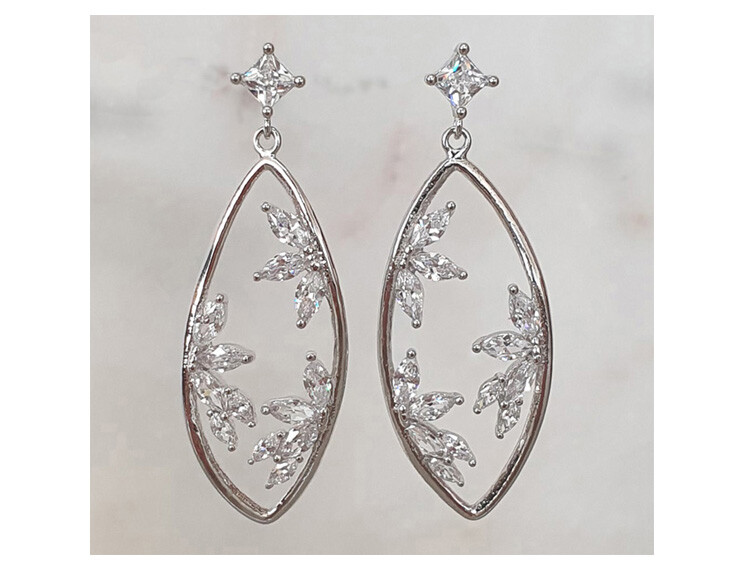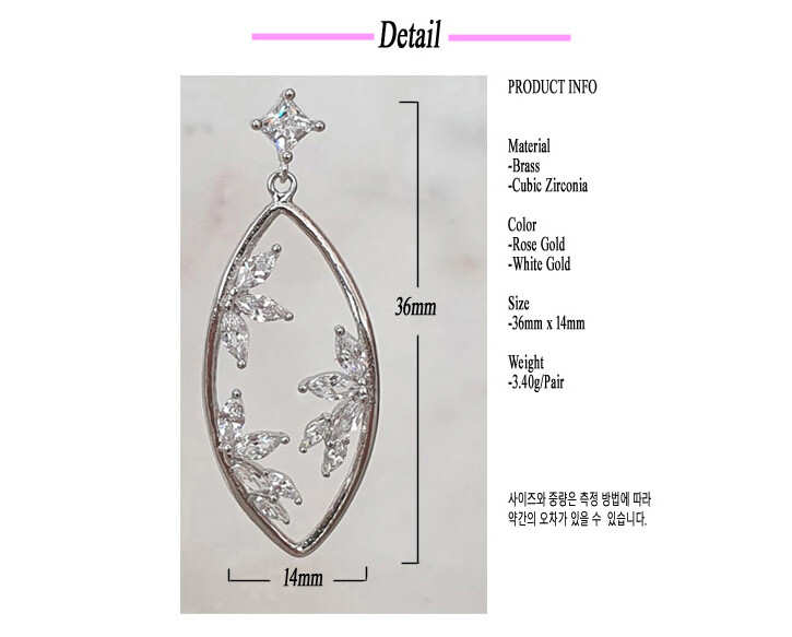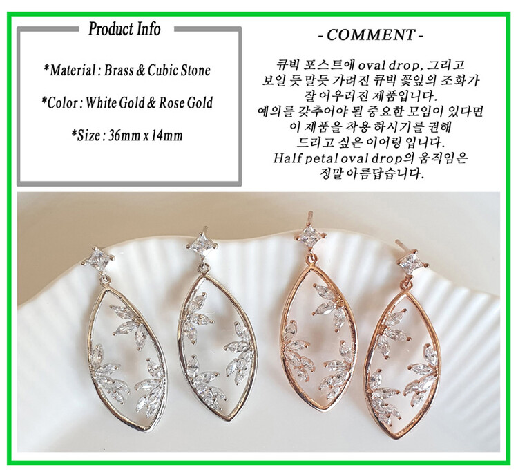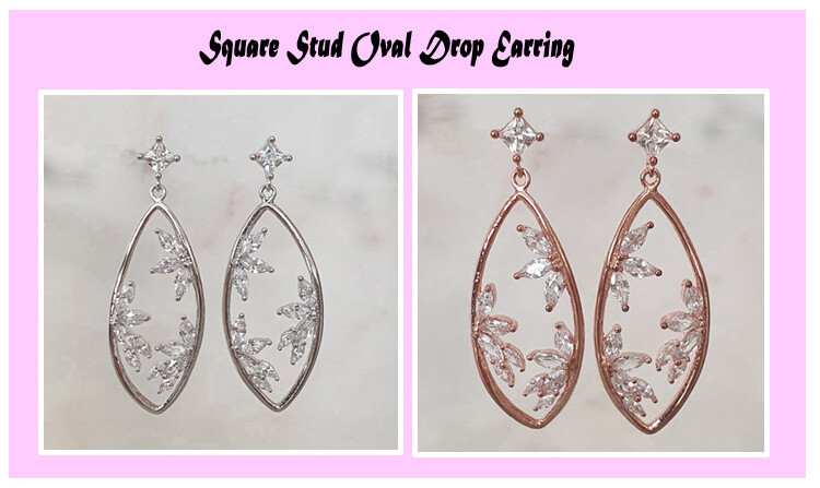 사각 post oval drop cubic earring( 은침 )