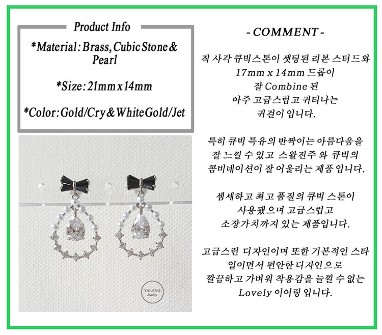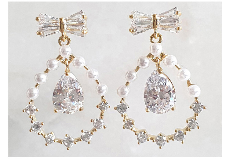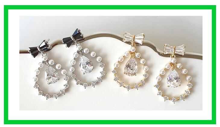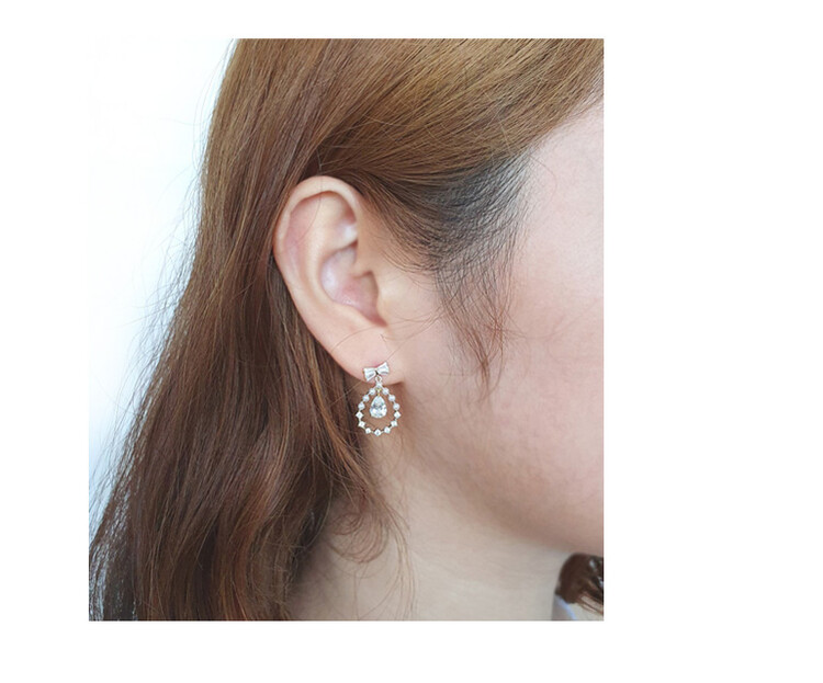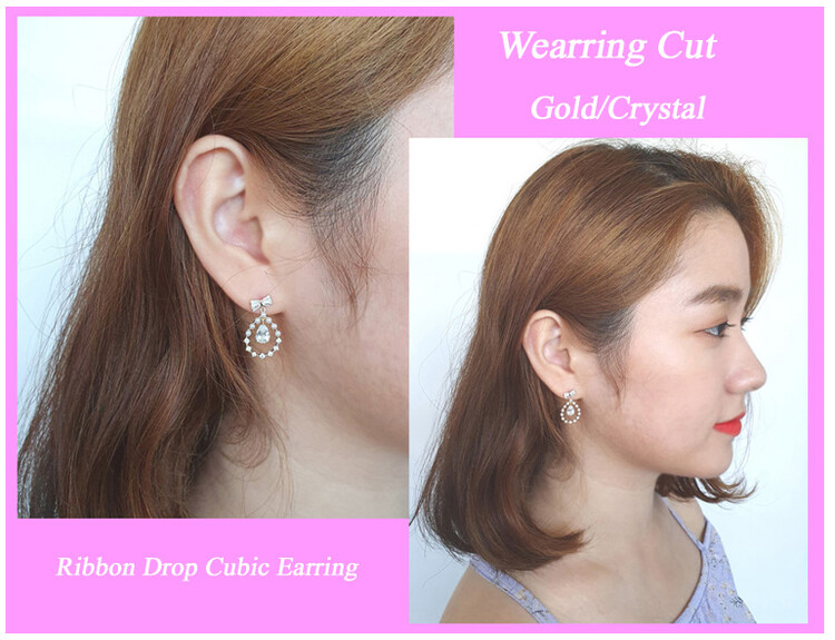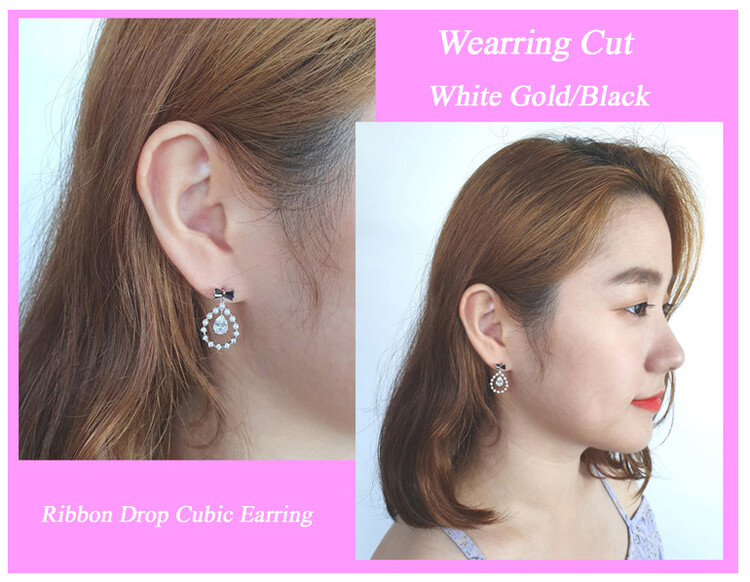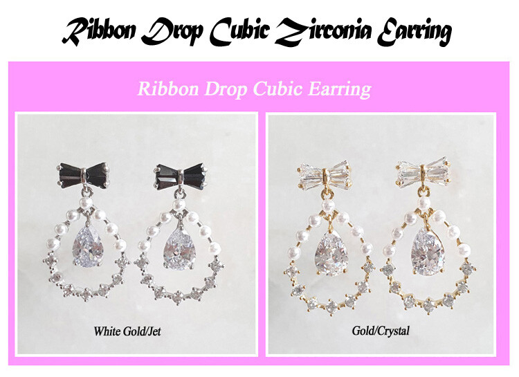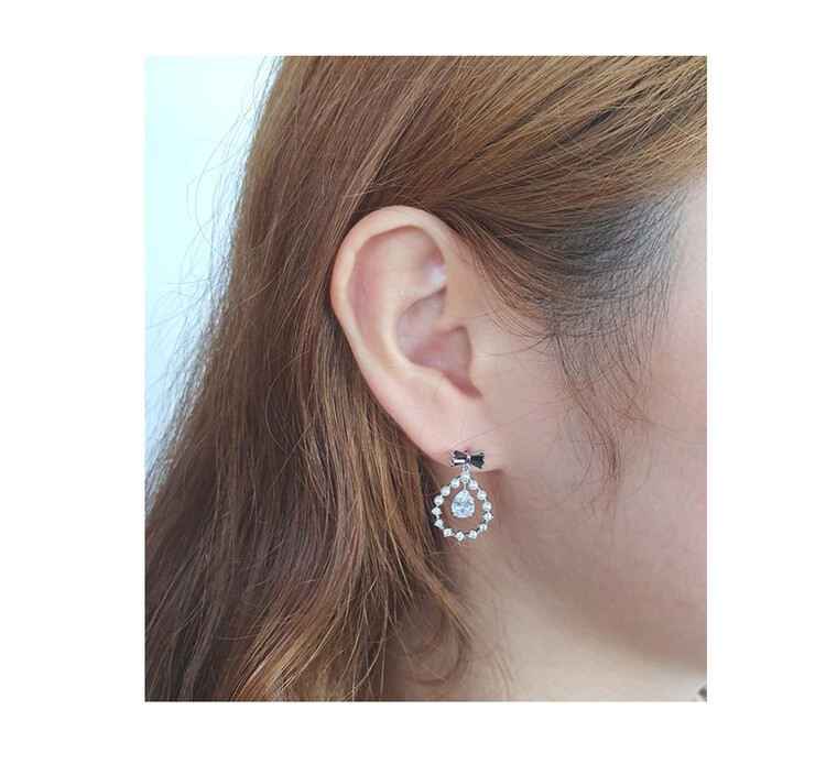 리본 드롭 큐빅 귀걸이 ( 은침 )