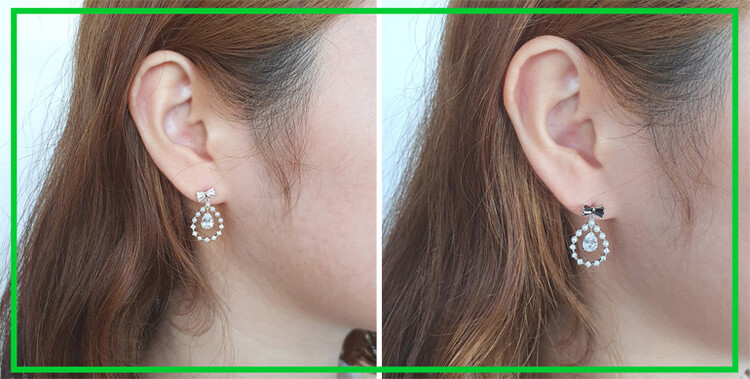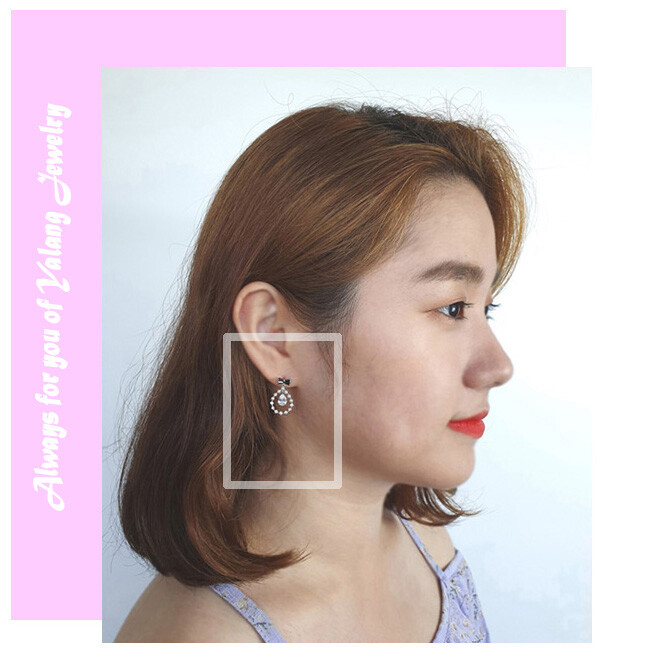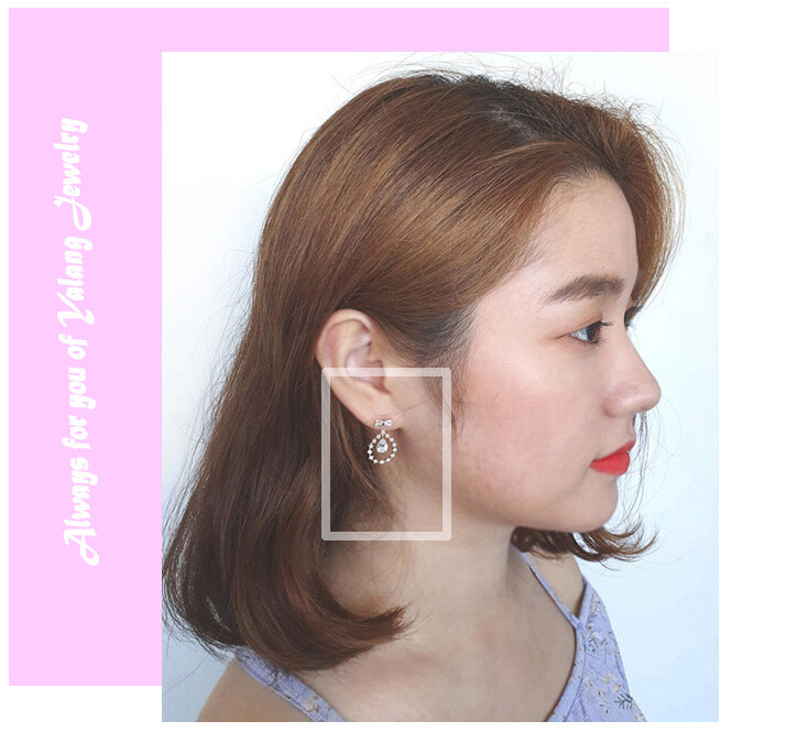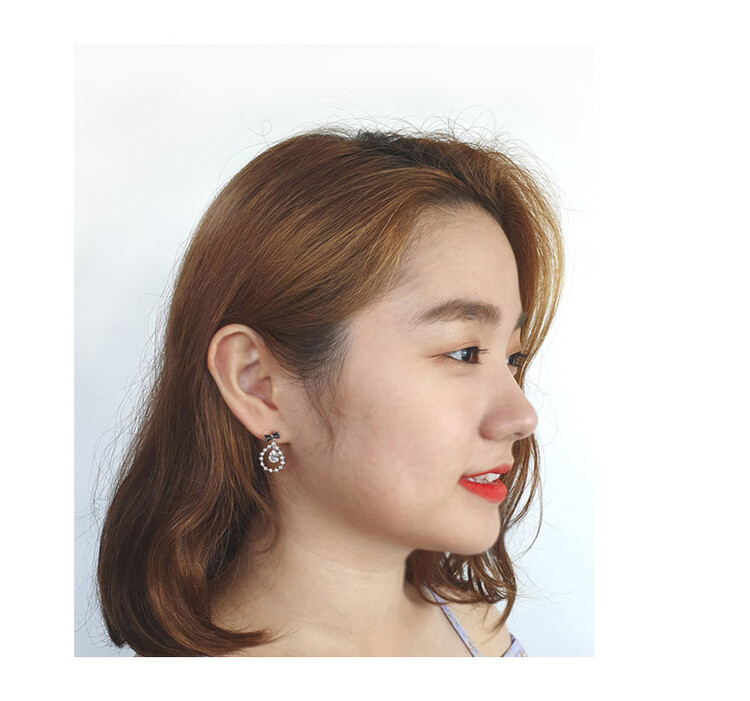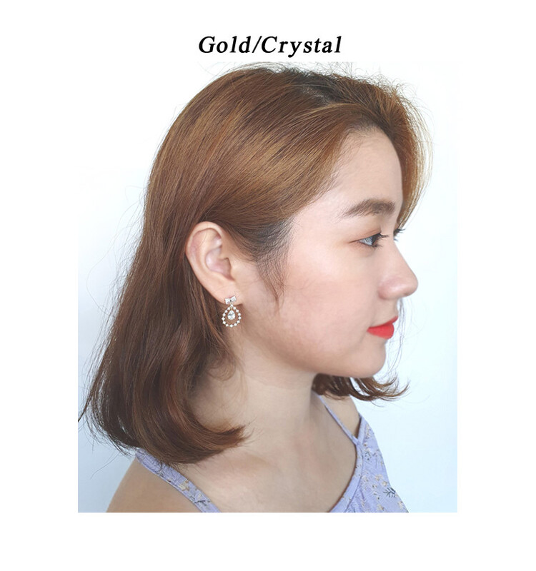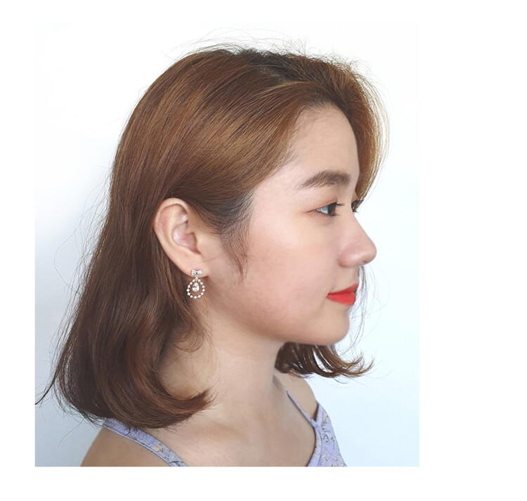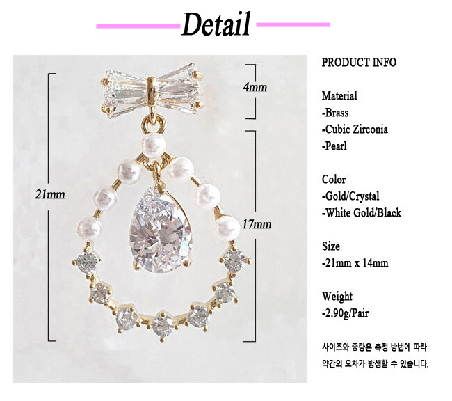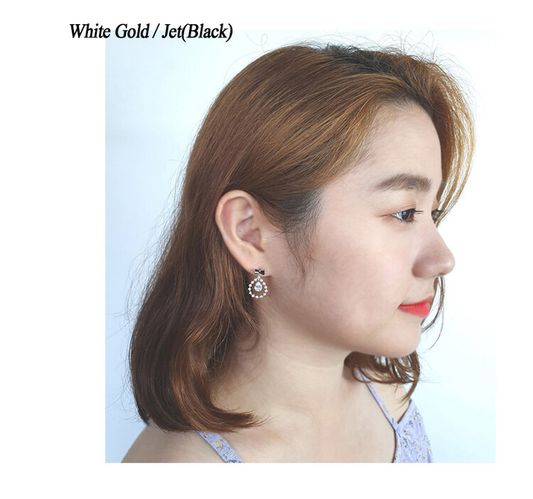 리본 드롭 큐빅 귀걸이 ( 은침 )