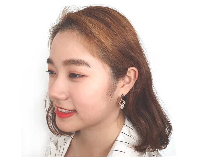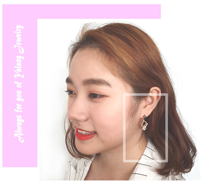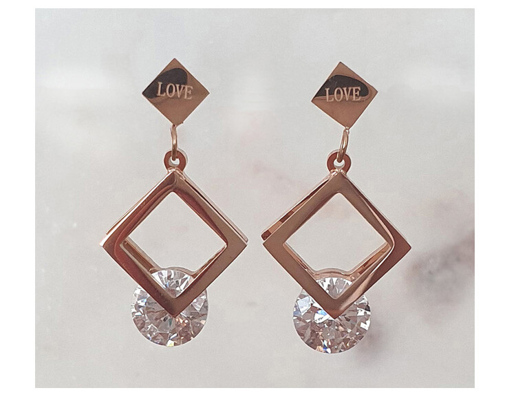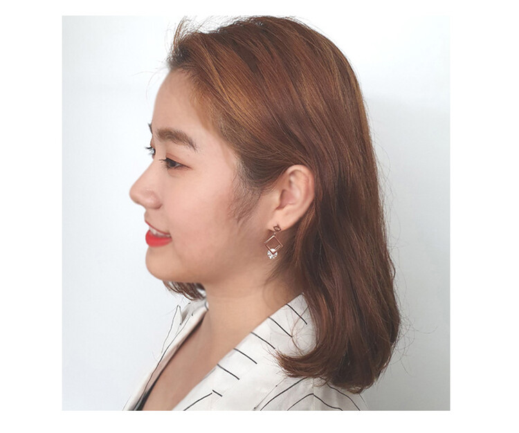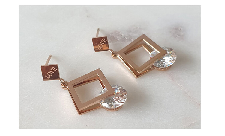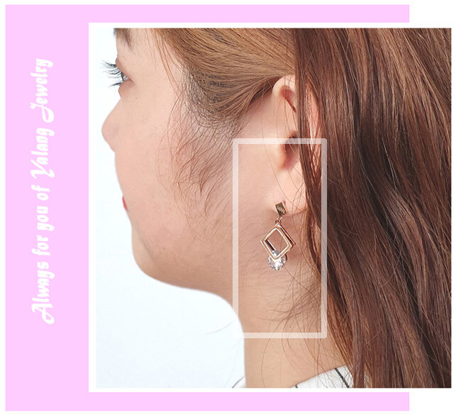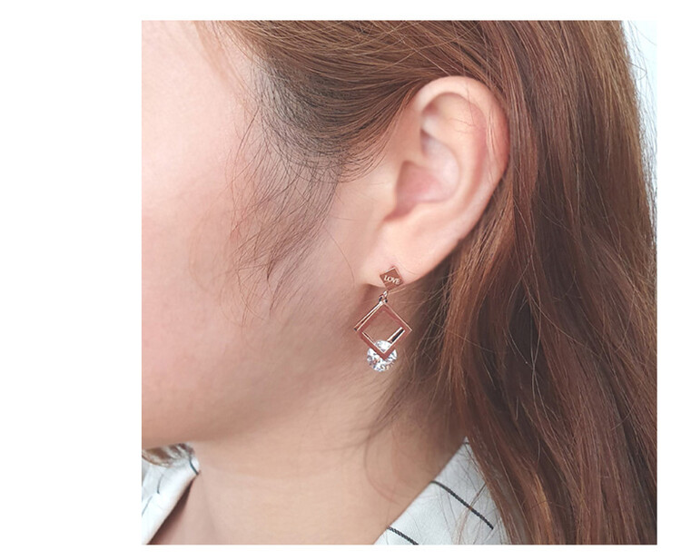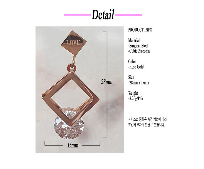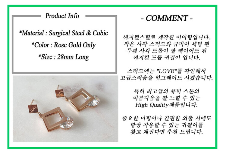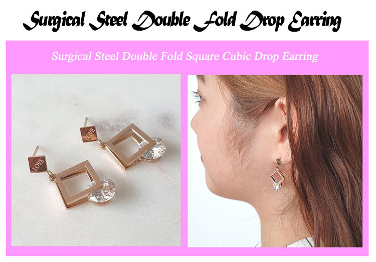 써지컬스틸 두곂 사각 큐빅 드롭 귀걸이