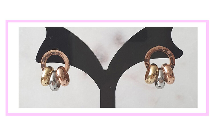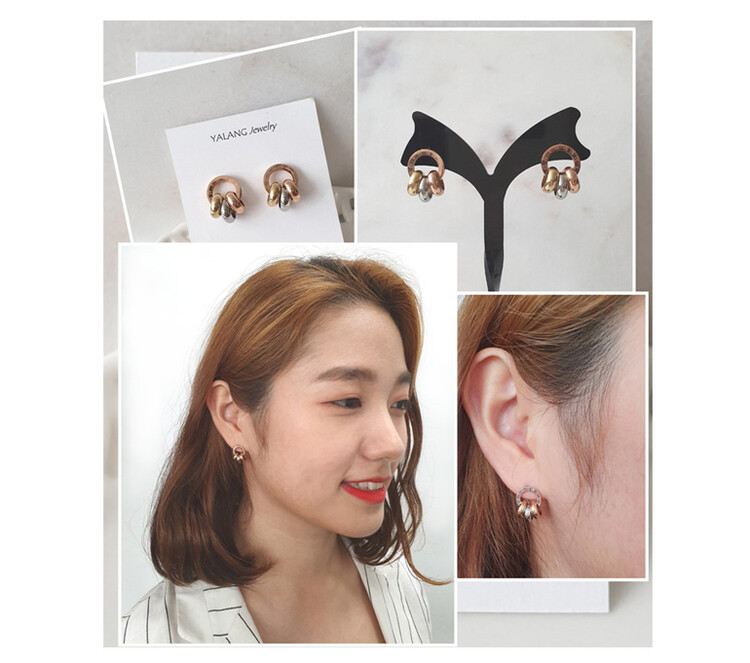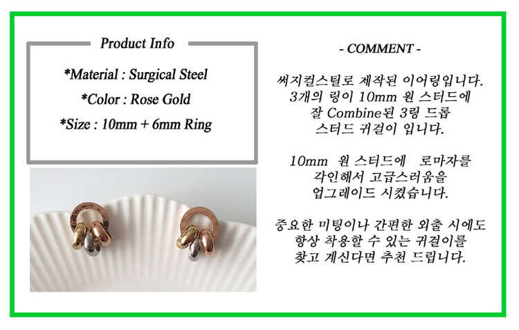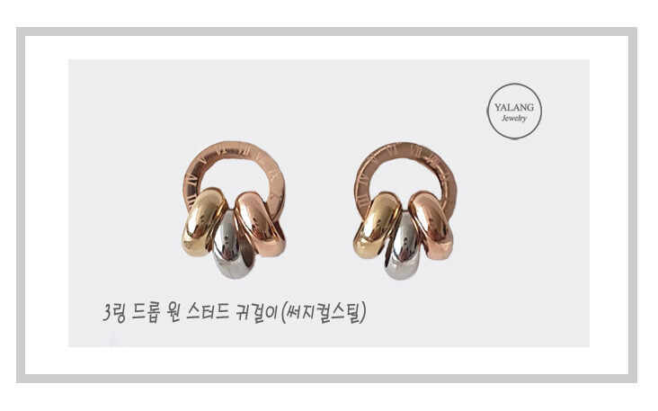 써지컬스틸 3링 드롭 원 스터드 귀걸이