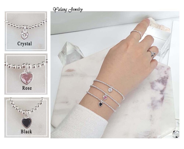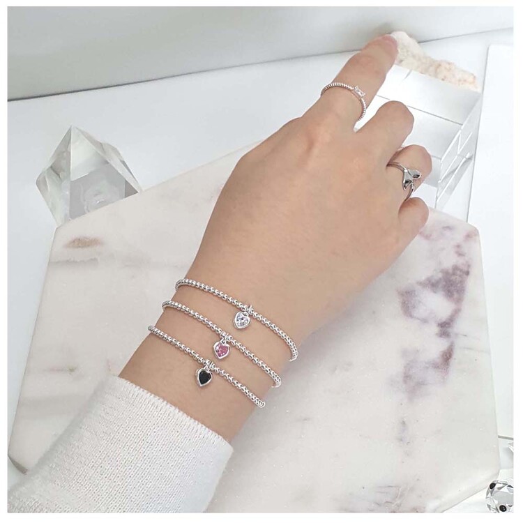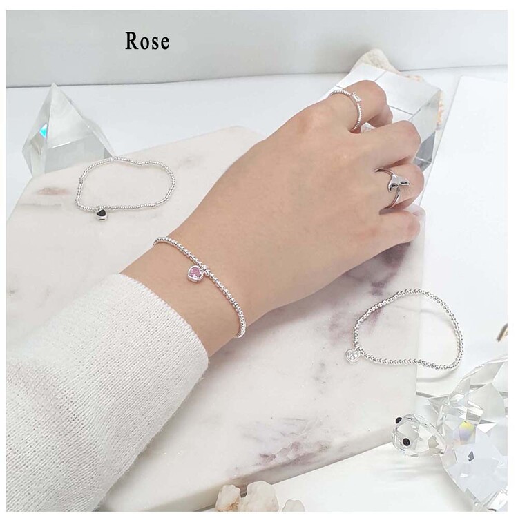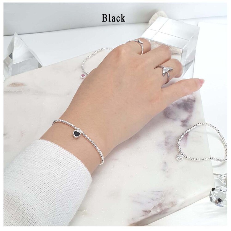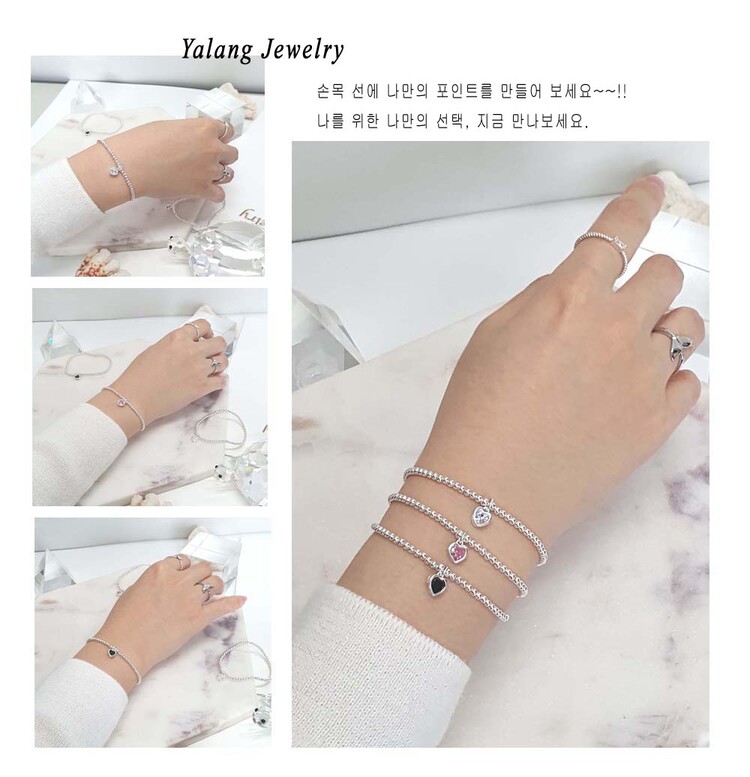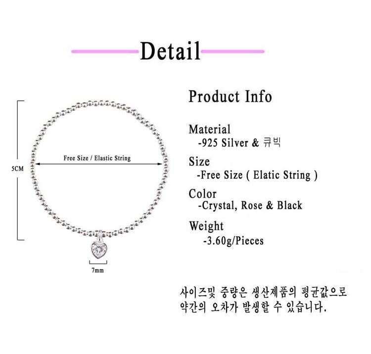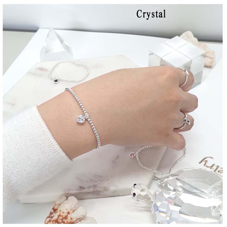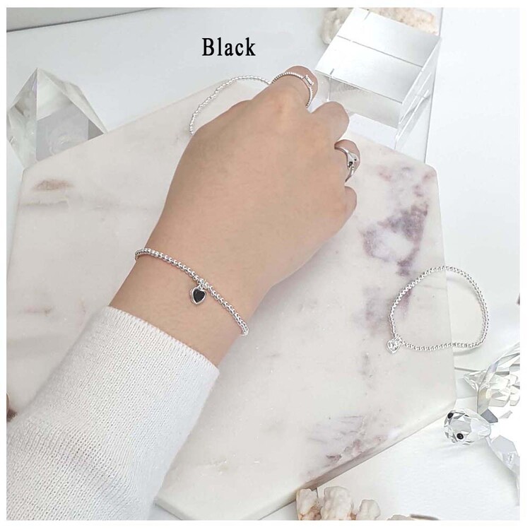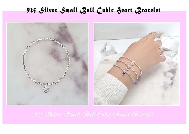925 실버 작은 볼 큐빅 하트 팔찌
