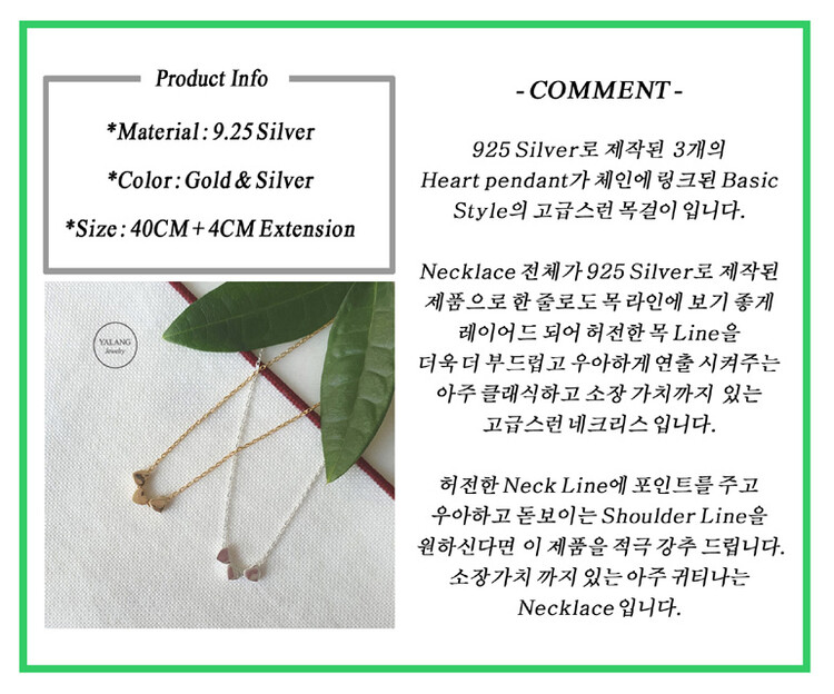 925 실버 Triple Heart 목걸이
