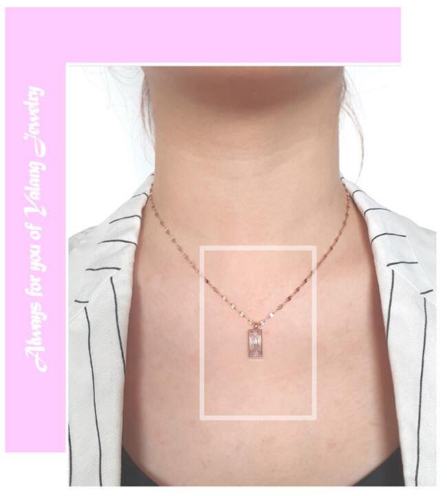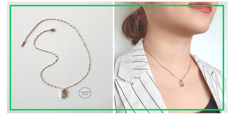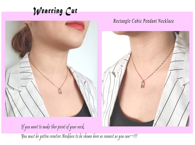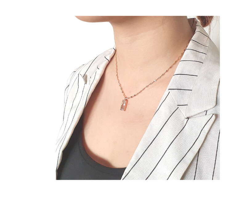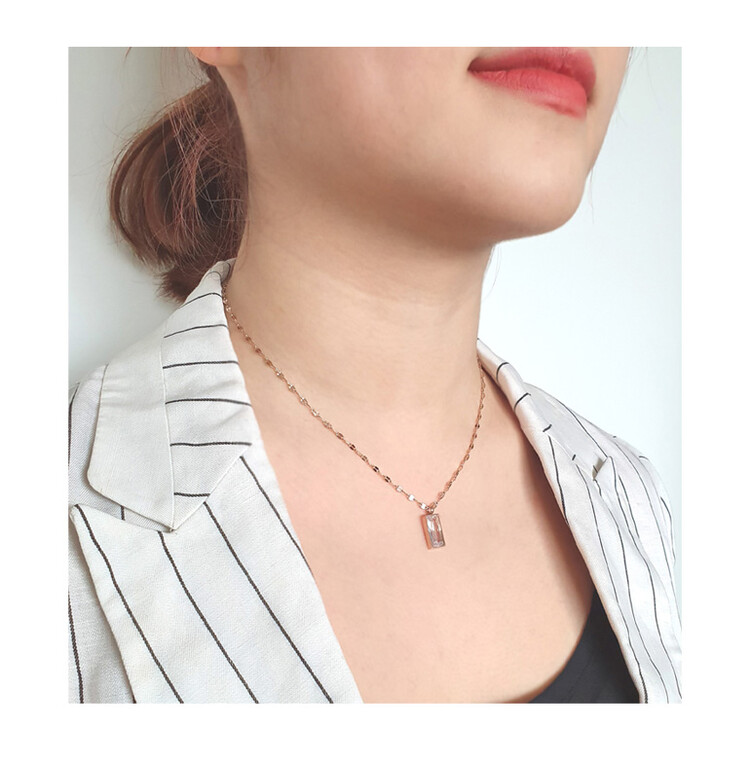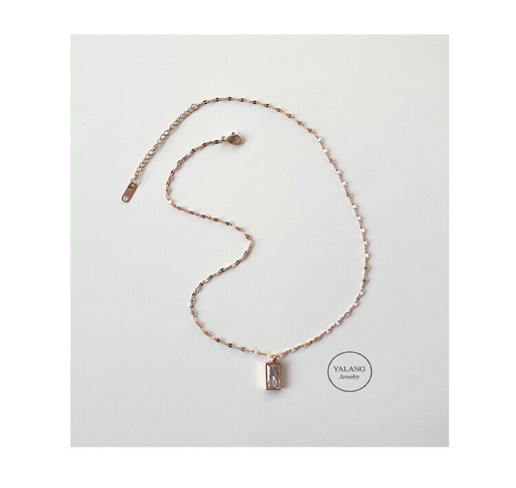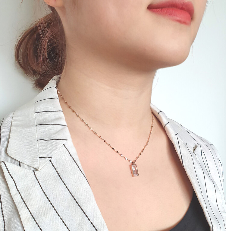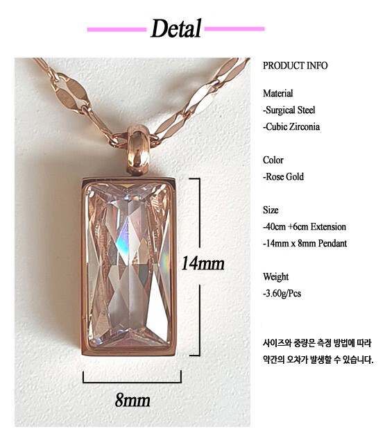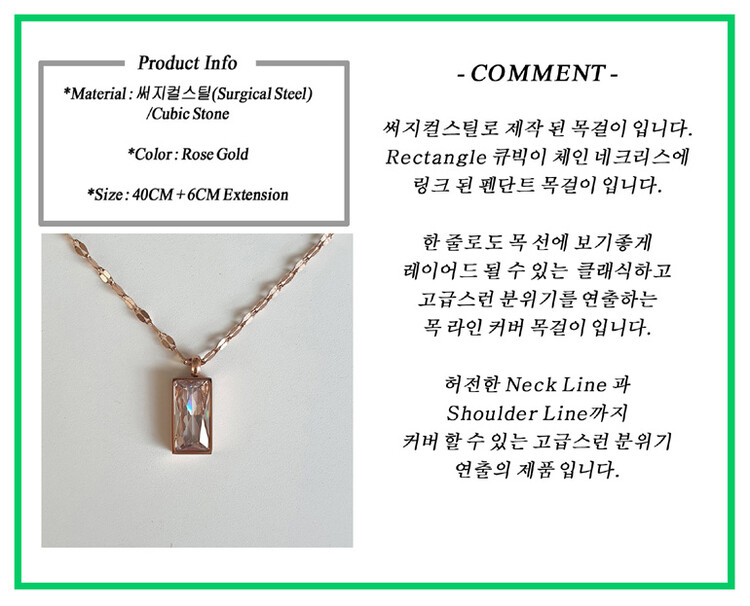 Rectangle 큐빅 펜던트 목걸이(써지컬스틸)
