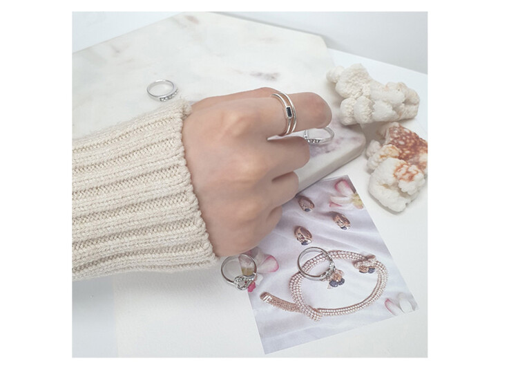 925실버 2 Row 큐빅 반지( Free Size )